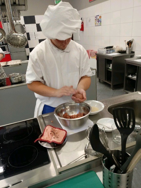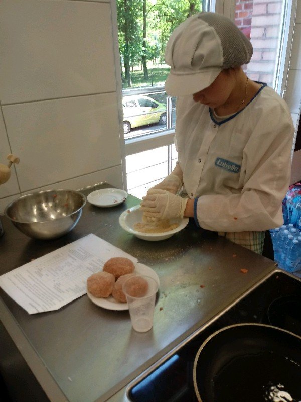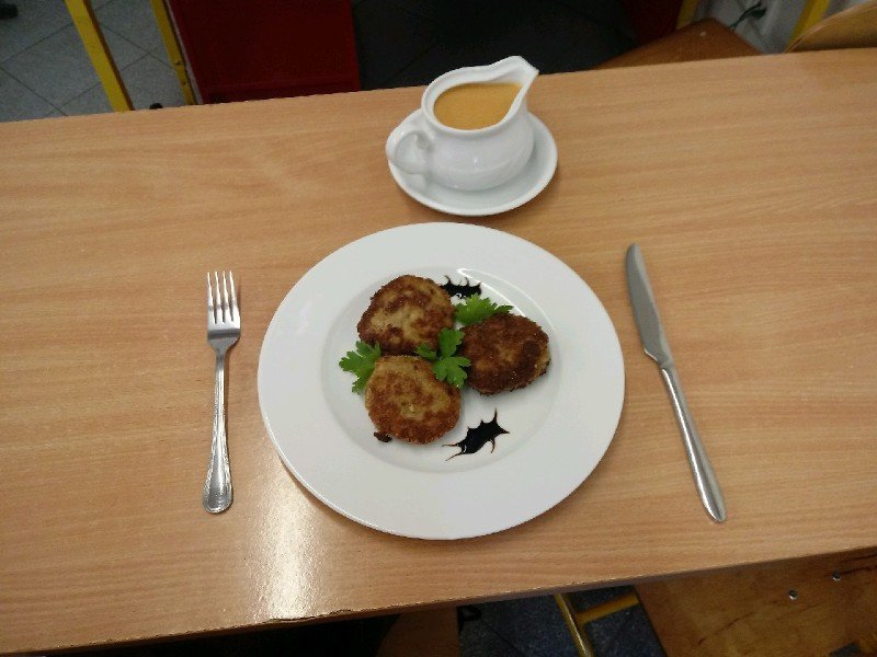 Zadanie egzaminacyjne polegało na przygotowaniu zgodnie z zamieszczonymi recepturami po dwa zestawy potraw składających się z kotletów z ziemniaków i mięsa oraz sosu pomidorowego.
