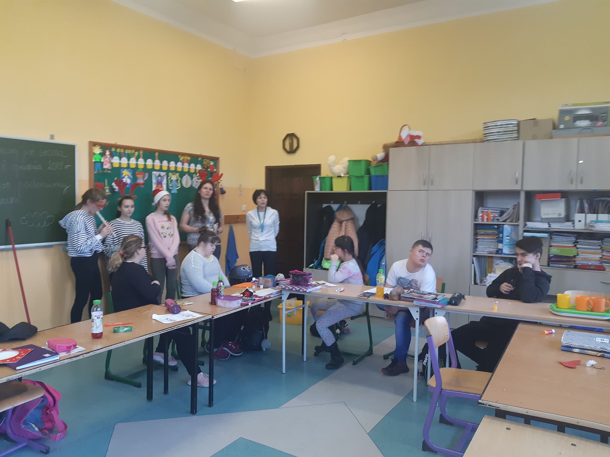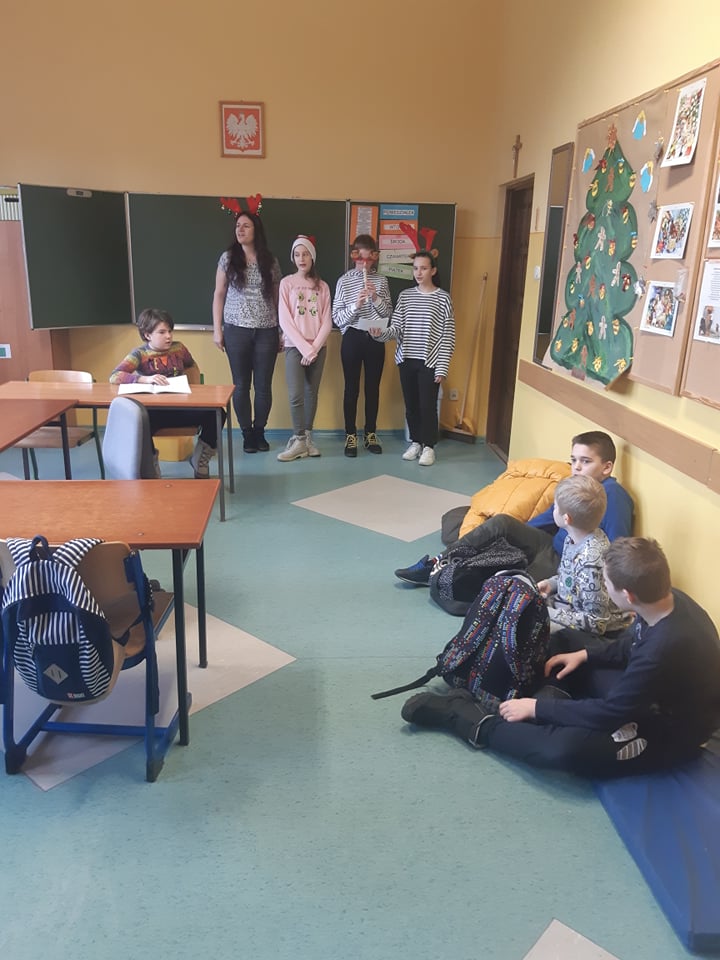 19 grudnia 2019 r. uczniowie Szkoły Podstawowej w Gowinie, pod opieką pani Kamili Łagi, odwiedzili uczniów naszej szkoły. Goście wędrowali od klasy do klasy składając świąteczne życzenia do których dołączyli śpiew i grę kolęd. Na zakończenie wręczali wszystkim uczniom ciasteczka upieczone przez rówieśników z ich szkoły.