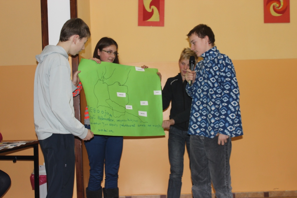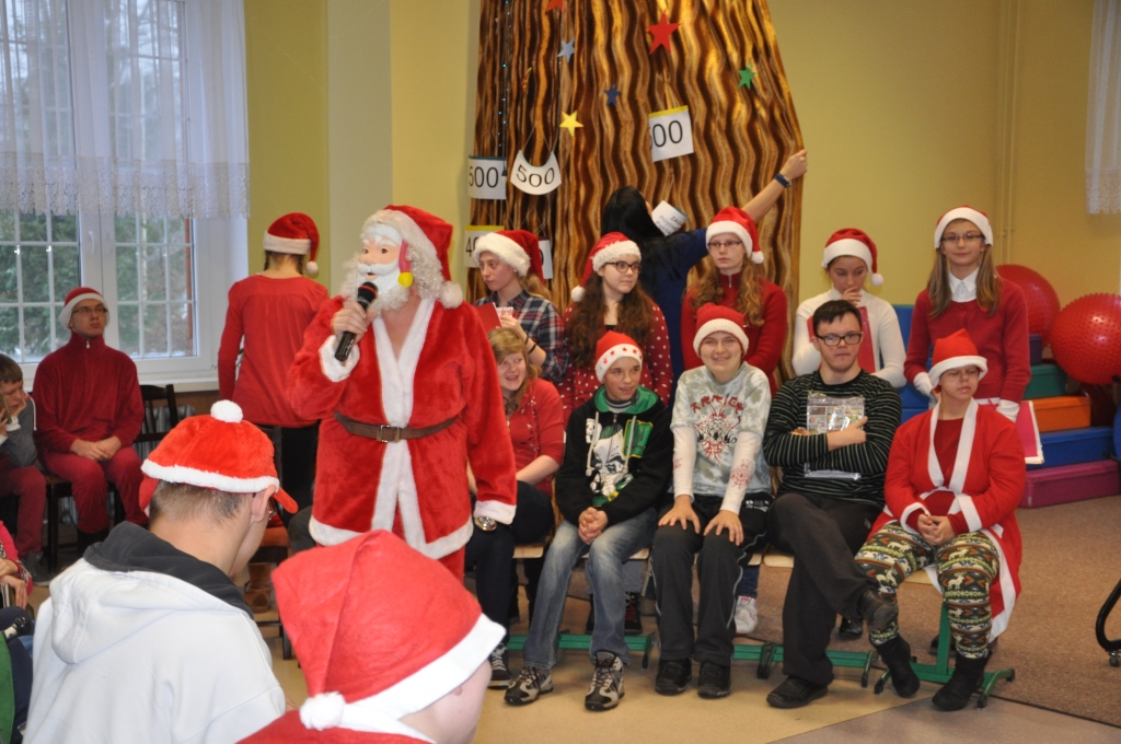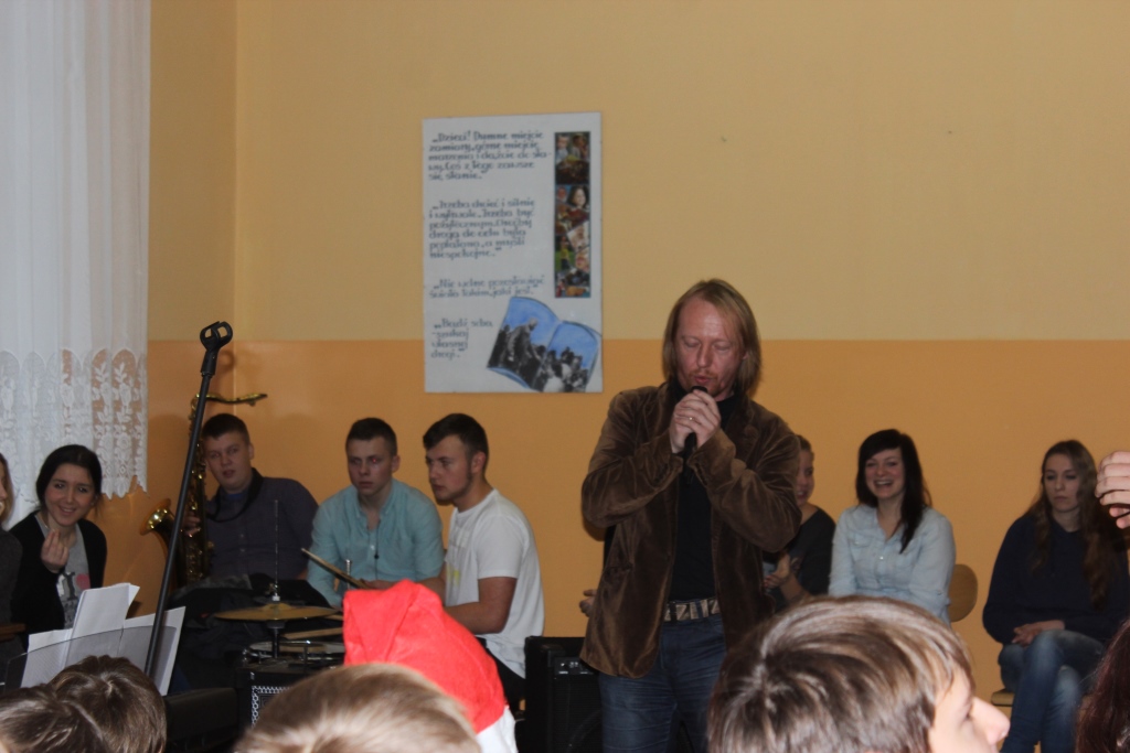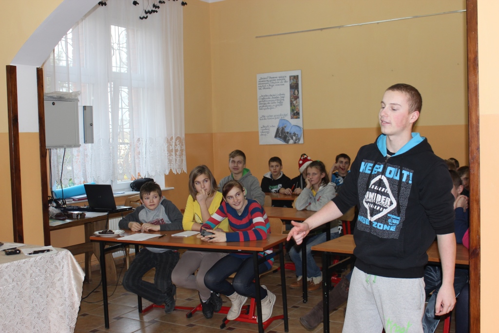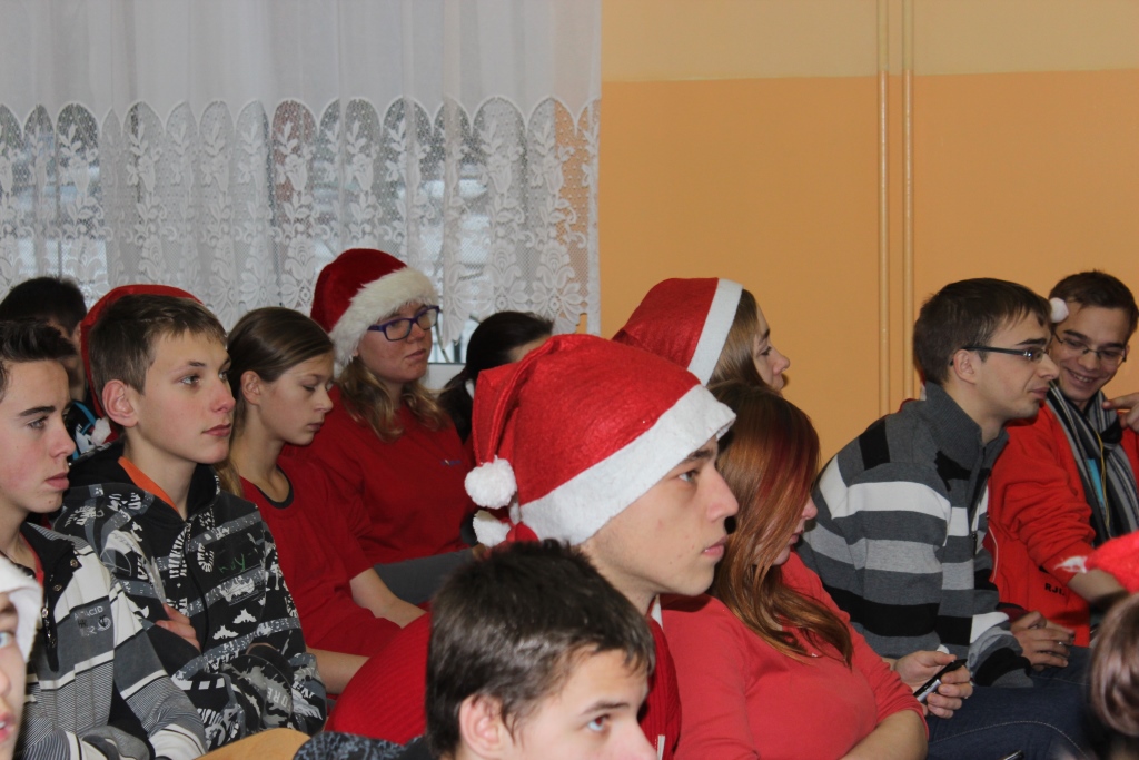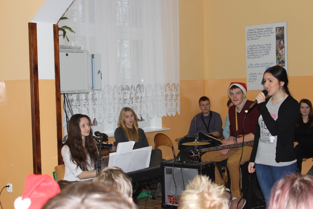 „Familiada”. W zabawie rywalizowali między sobą nauczyciele oraz uczniowie. Osobą prowadzącą był „ Święty Mikołaj”, w którego rolę wcieliła się pani opiekun uczniów z Gimnazjum w Bolszewie.