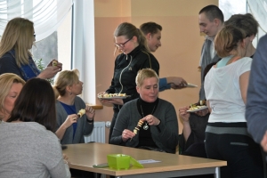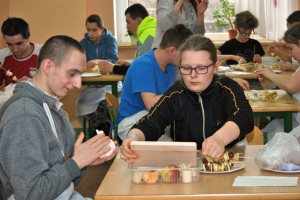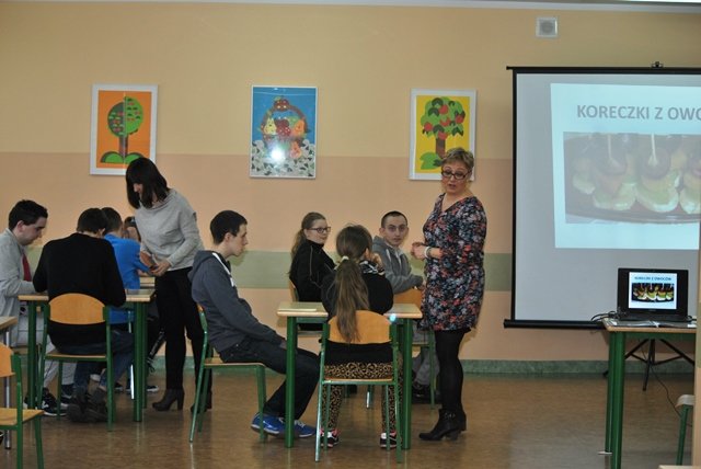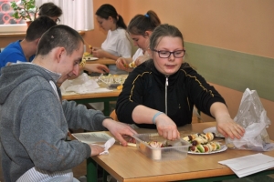 Pierwszym etapem konkursu było wykonanie pracy plastycznej pt. „Zdrowie na talerzu”, którą nasz zespół wykonał w szkole jeszcze w grudniu. W drugiej części turnieju uczniowie mieli okazję zaprezentować swoją wiedzę dotyczącą zasad zbilansowanej diety, planowania zakupów. W części praktycznej zawodnicy wykonywali zdrową przekąskę – owocowe szaszłyki. A następnie wykazali się świetną kondycją fizyczną – wykonując kilka konkurencji sportowych. Nasza drużyna okazała się bardzo dobrze przygotowana, gdyż zajęła 2 miejsce! Gratulujemy!