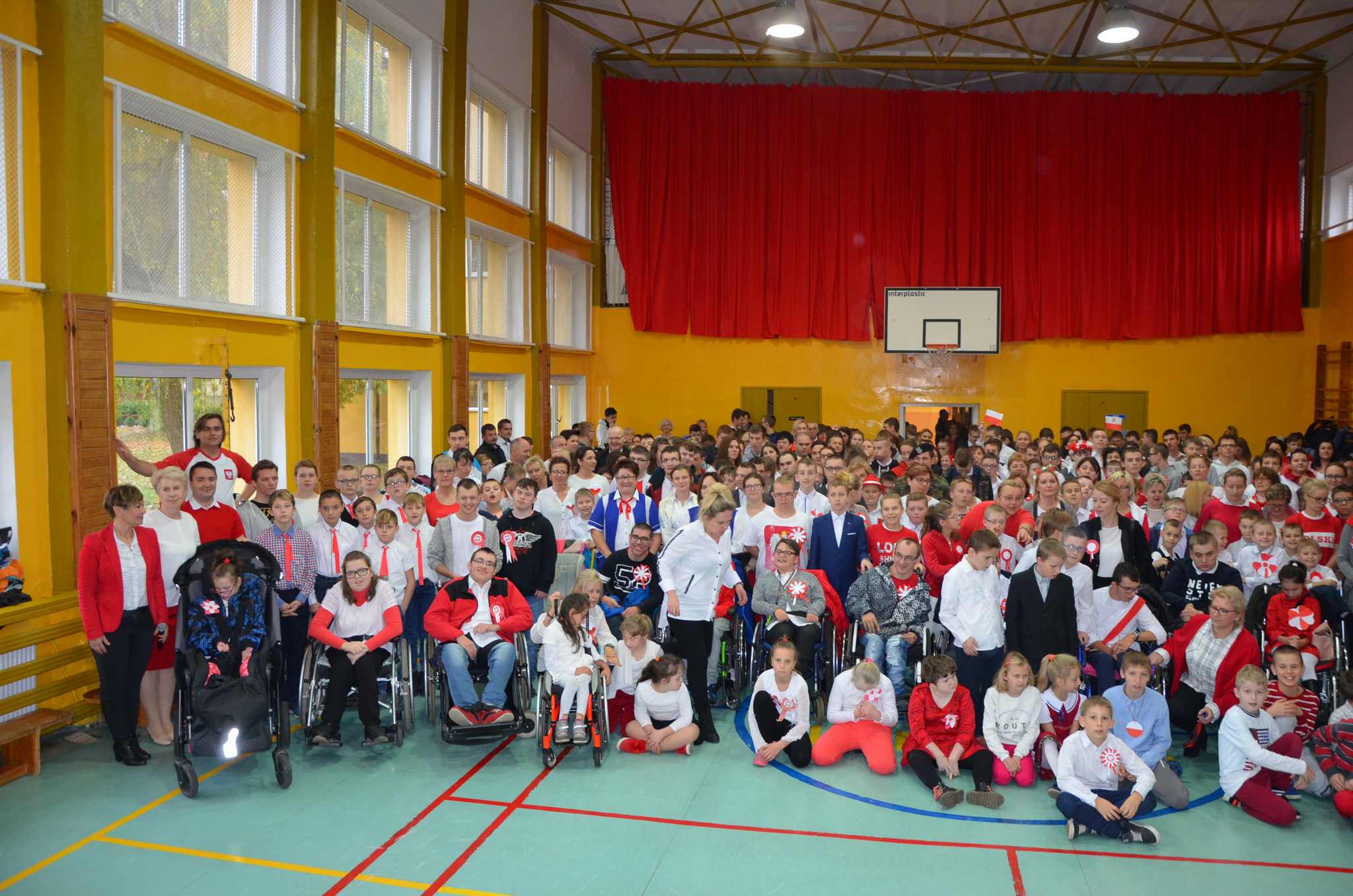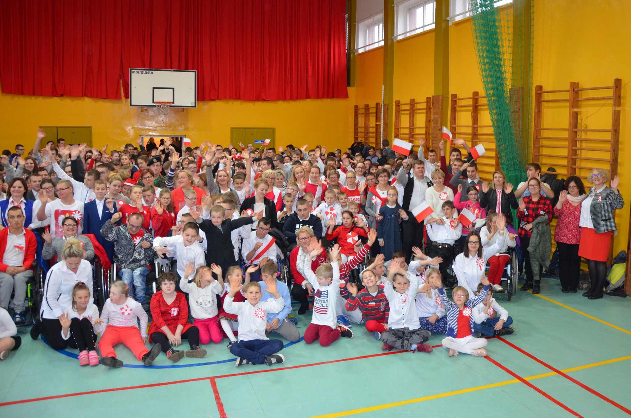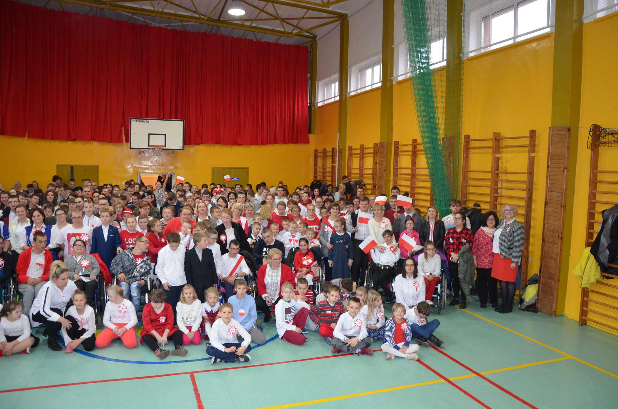 Wszyscy: uczniowie, nauczyciele oraz CAŁA SZKOLNA SPOŁECZNOŚĆ spotkaliśmy się w sali gimnastycznej w celu wspólnego odśpiewania czterech zwrotek Hymnu Narodowego. Dzięki punktualności i dobrej organizacji całość udała się bardzo dobrze i wszyscy z powagą i szacunkiem pięknie zaśpiewali, za co dziękujemy, BRAWO !!!