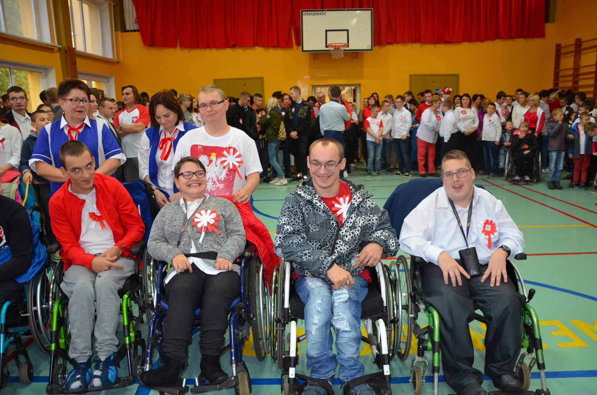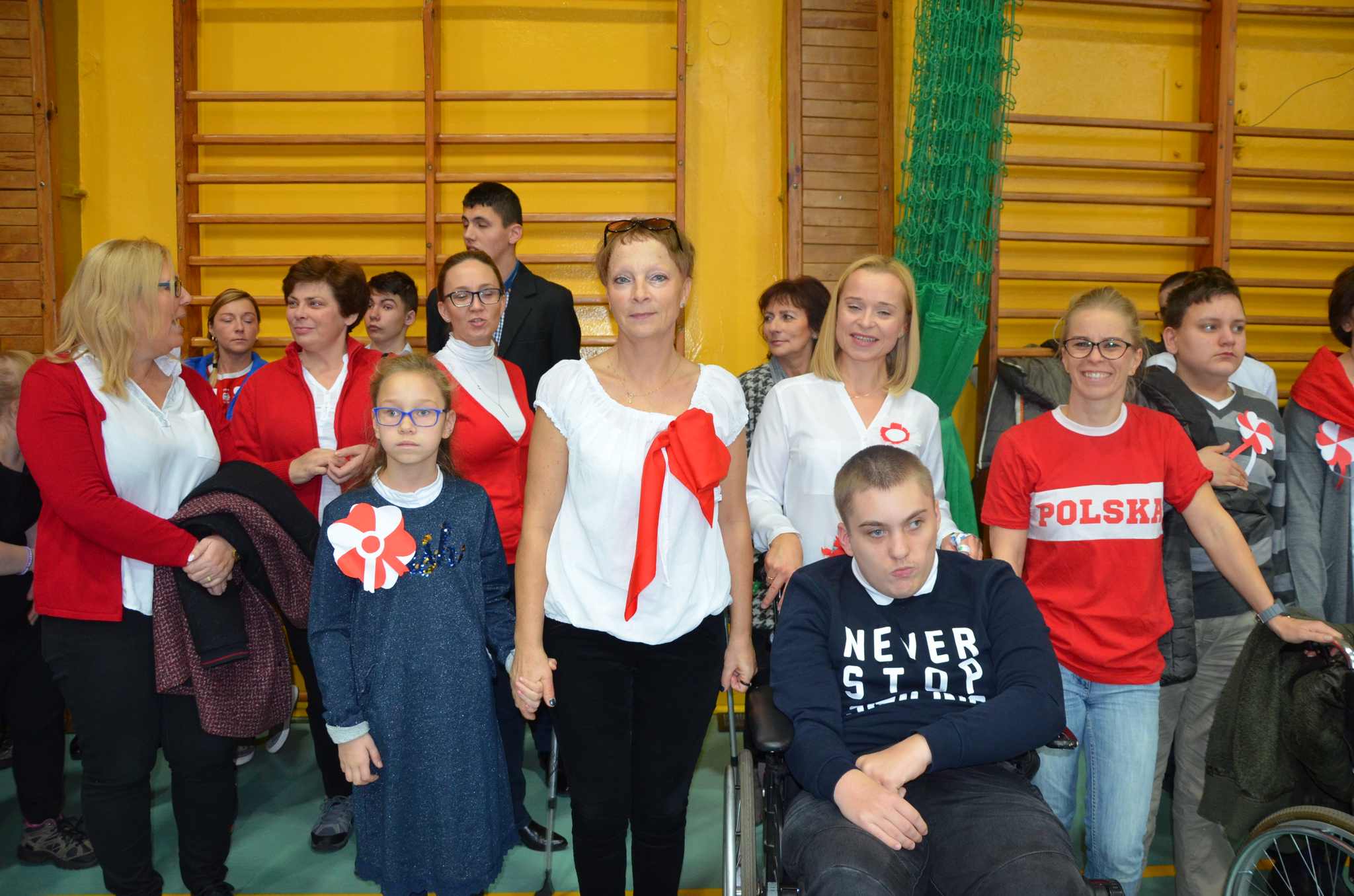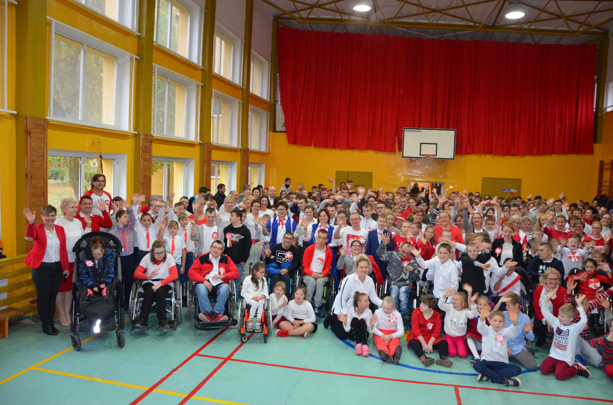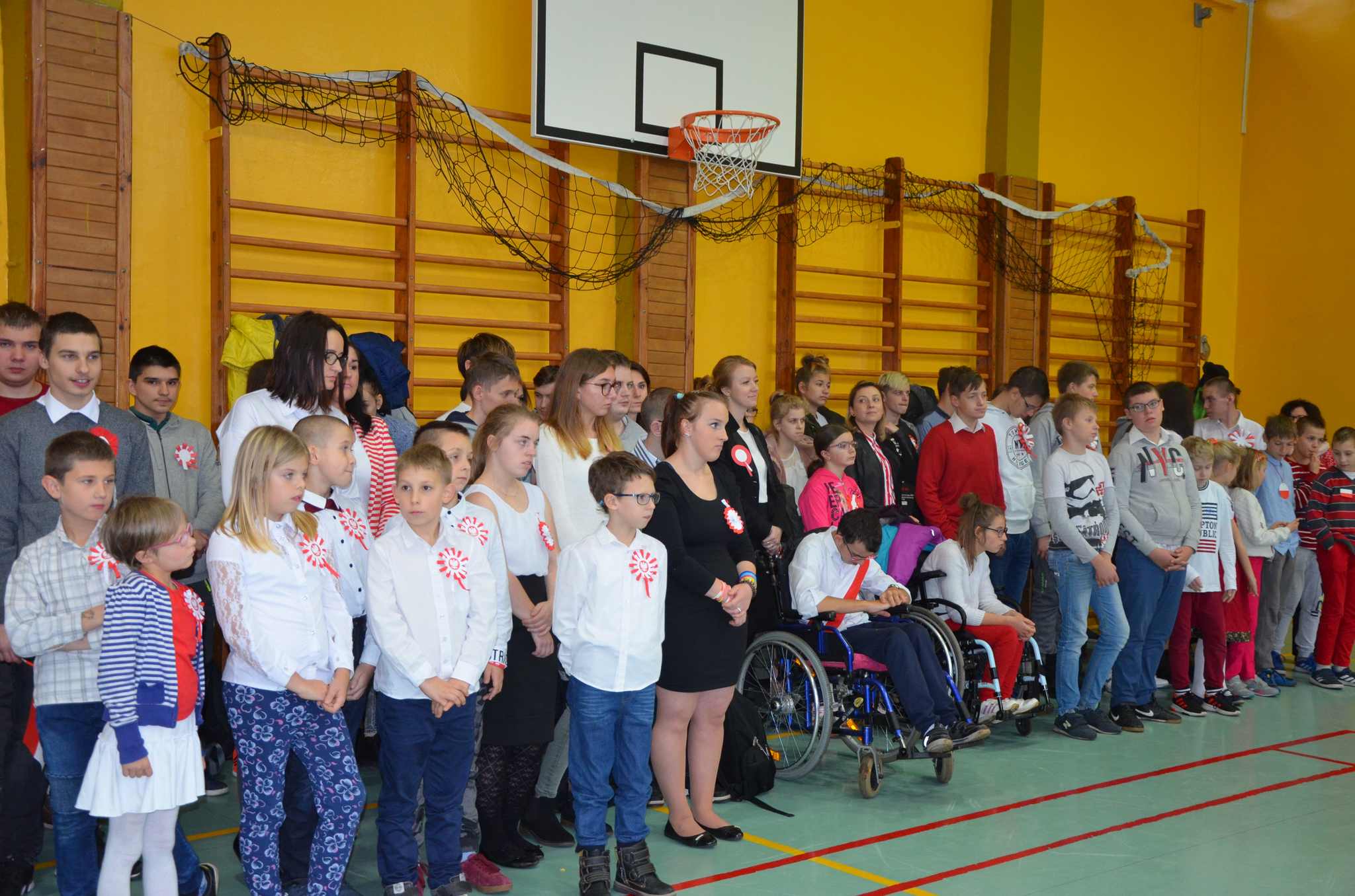 Wszyscy: uczniowie, nauczyciele oraz CAŁA SZKOLNA SPOŁECZNOŚĆ spotkaliśmy się w sali gimnastycznej w celu wspólnego odśpiewania czterech zwrotek Hymnu Narodowego. Dzięki punktualności i dobrej organizacji całość udała się bardzo dobrze i wszyscy z powagą i szacunkiem pięknie zaśpiewali, za co dziękujemy, BRAWO !!!