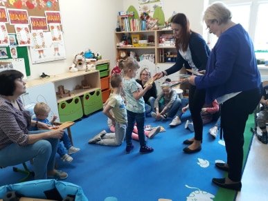 29 maja odbyły się w przedszkolu zajęcia biblioteczne poprowadzone przez panią Teresę. Wraz z zaproszonym gościem przeżyliśmy kolejne przygody uczestnicząc w inscenizacji bajek „Zając i żółw” oraz „Trzy świnki” czytanych przez panią bibliotekarkę. Pouczające przygody zwierzątek ułatwiają zrozumieć dzieciom zasady panujące w naszym świecie oraz przestrzegają przed zarozumiałością oraz przecenianiem swoich możliwości. Pokazują również, że każdy ma szansę coś osiągnąć będąc wytrwałym i solidnym oraz poczuć się docenionym. Udział w spotkaniu wzięły grupy Smerfiki, Skrzaty, 0 „D”