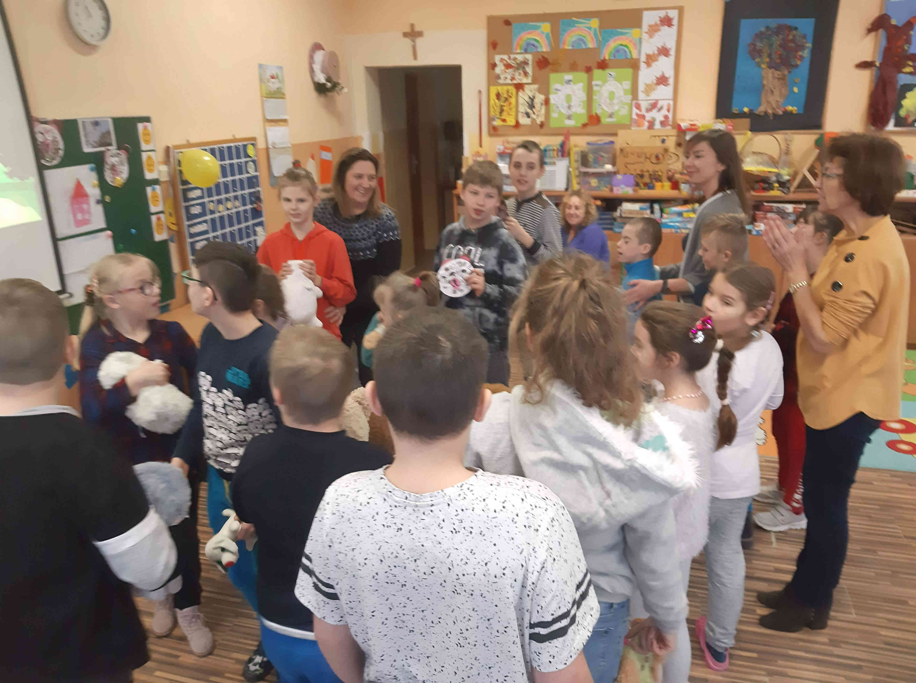 Poznaliśmy zwyczaje i styl życia niedźwiedzi brunatnych i polarnych. Przypomnieliśmy sobie historię powstania pluszowych zabawek. Oglądaliśmy różne postacie z bajek – opowiadaliśmy o nich, oglądaliśmy krótkie filmy z misiami w roli głównej. Wykonaliśmy prace plastyczne przedstawiające postać misia. Na zakończenie zabawy każdy otrzymał pamiątkowy Dyplom Przyjaciela Misia oraz pyszne misie haribo.