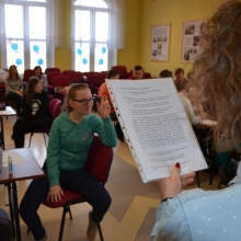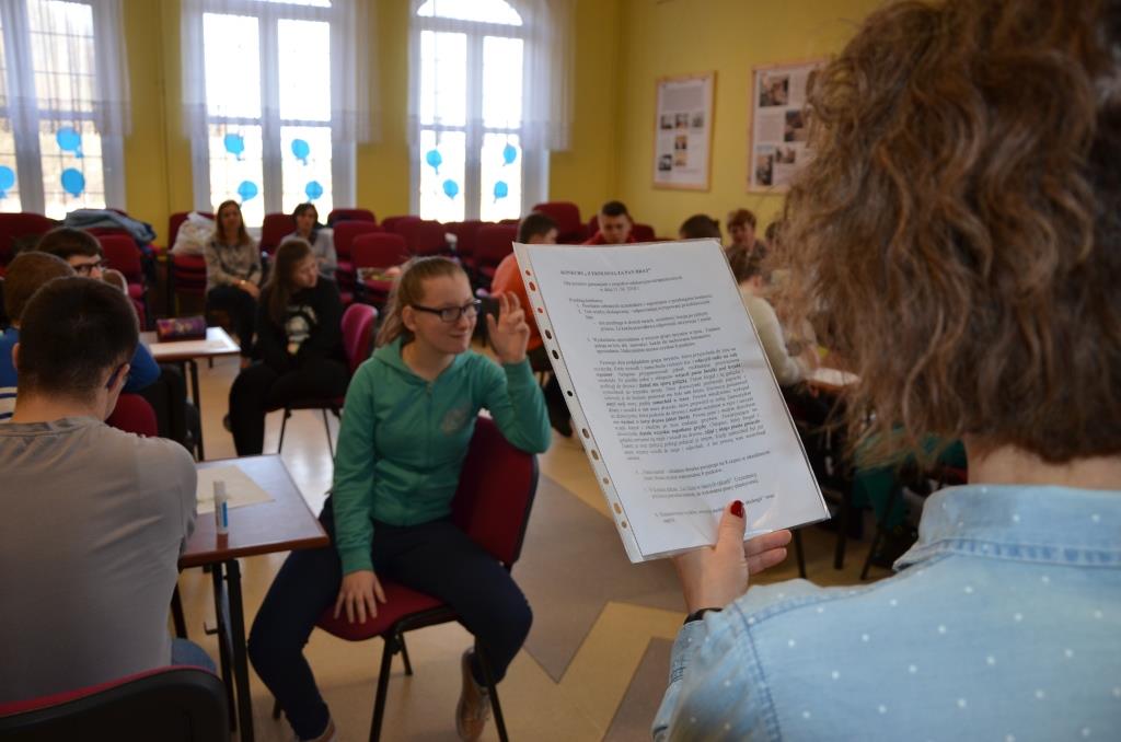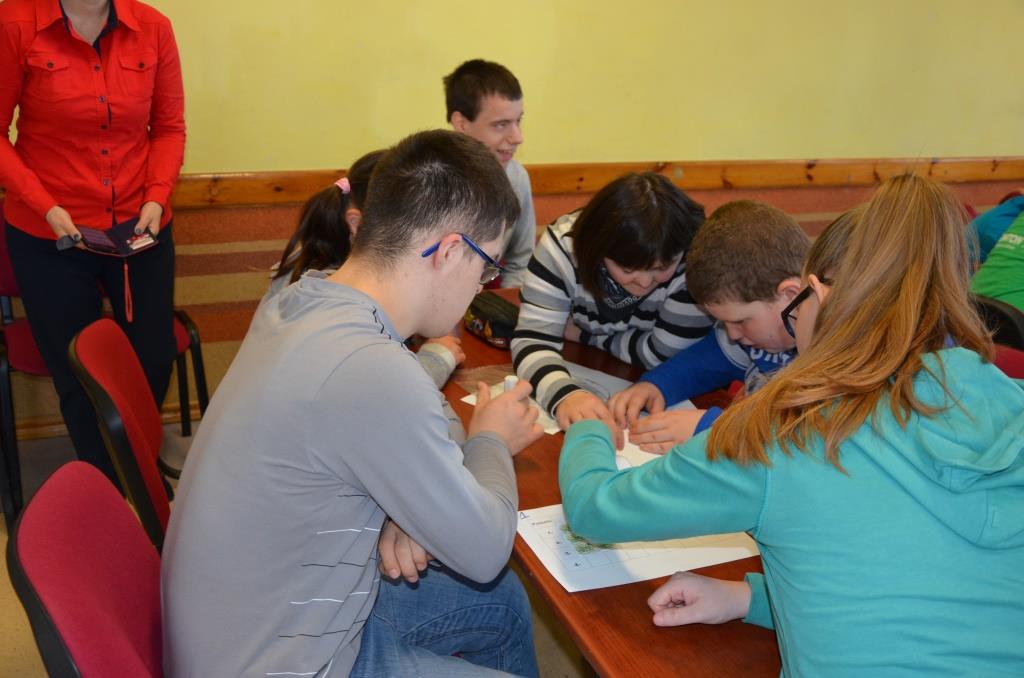 Uczestnicy rozwiązywali test wiedzy ekologicznej wykazując się dużym zaangażowaniem i wiadomościami. Następnie ich zadaniem było wysłuchanie opowiadania „Wizyta grupy turystów w lesie”, na podstawie którego mieli wskazać każde złe zachowanie bohaterów.