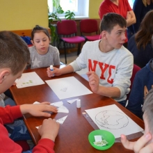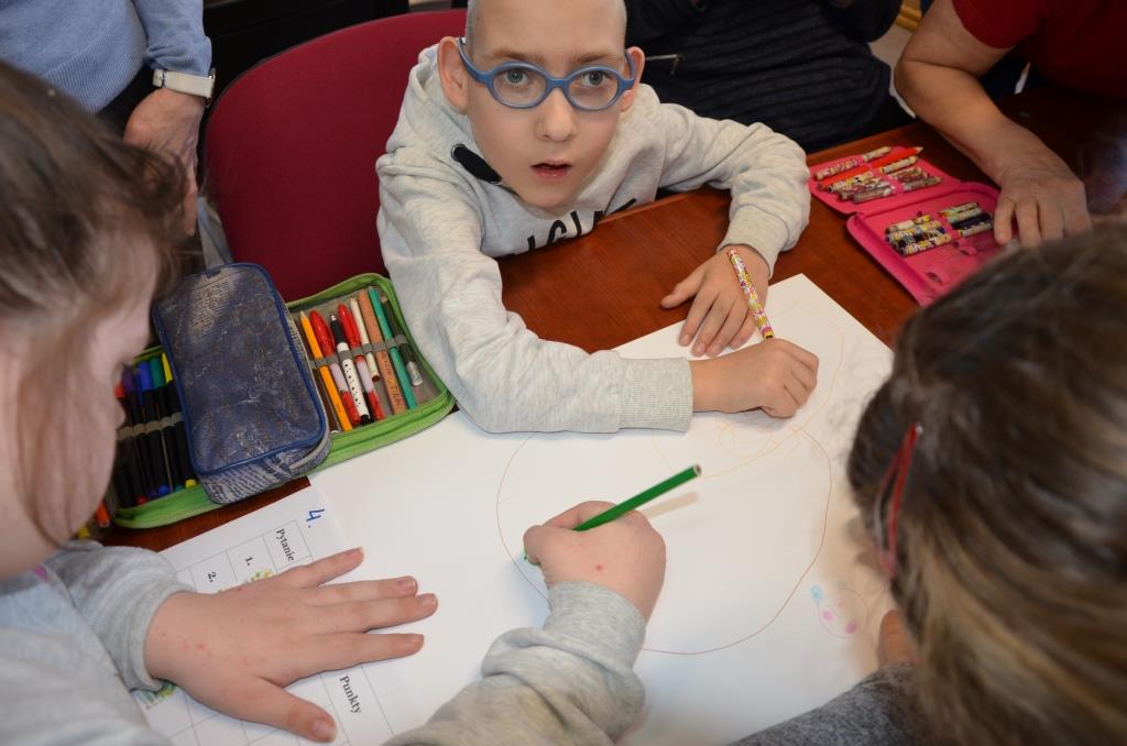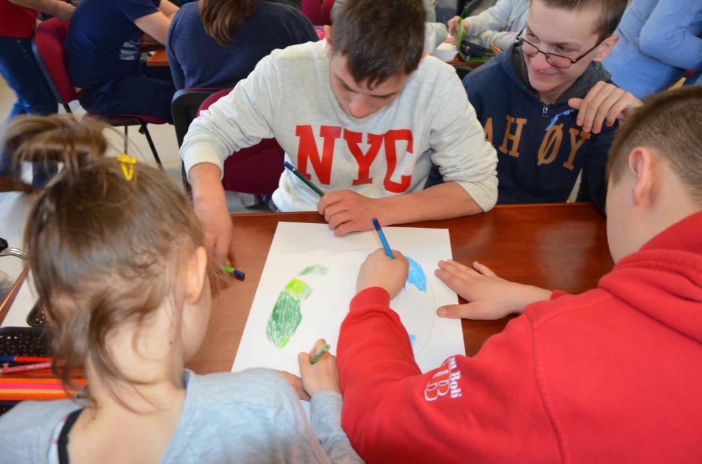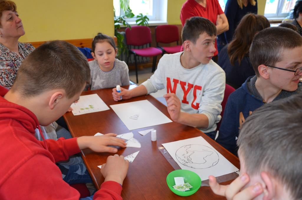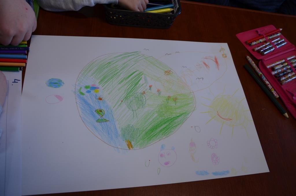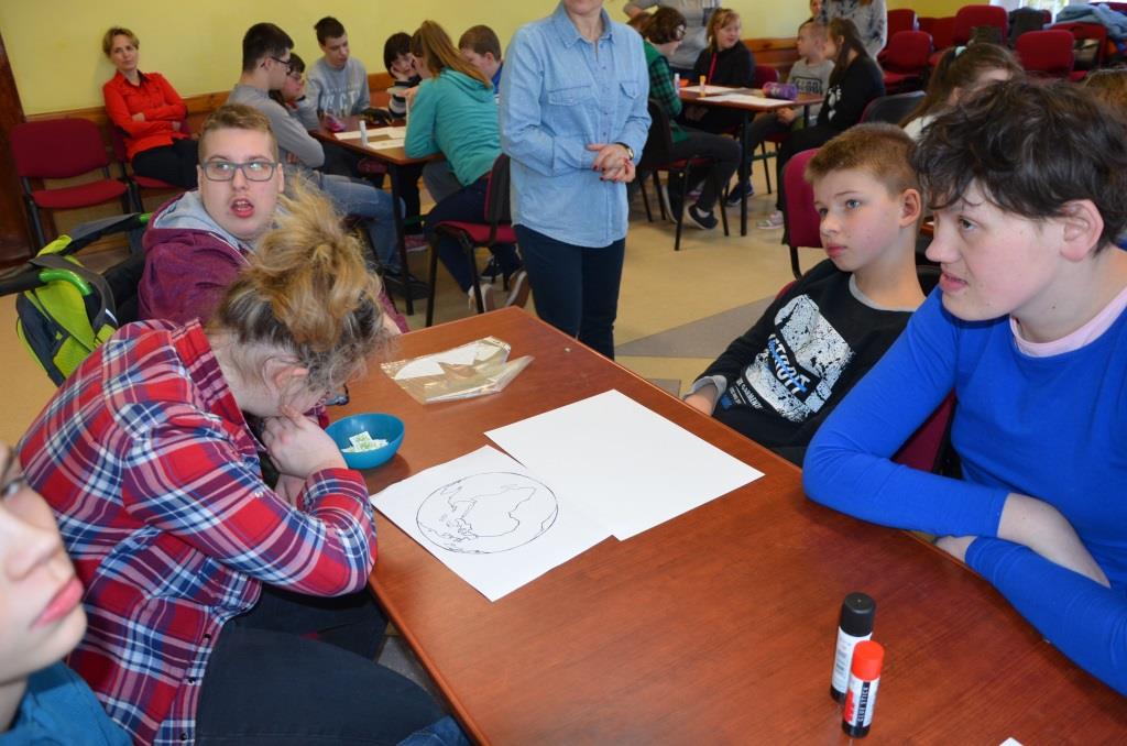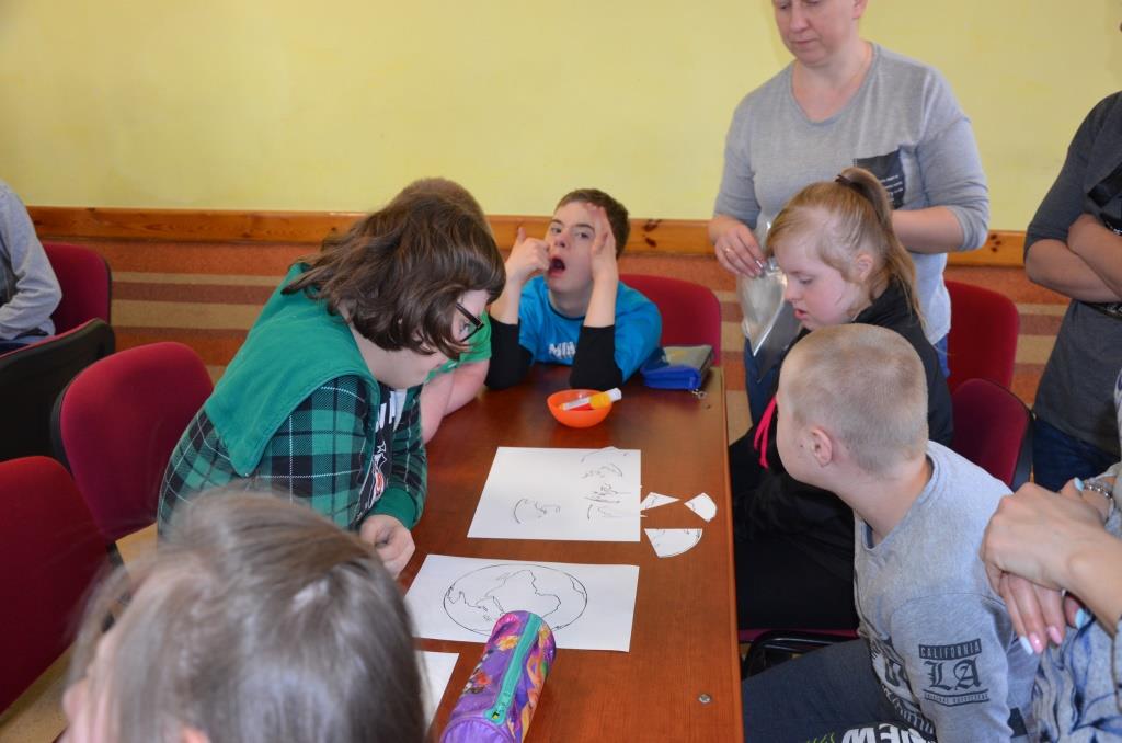 Trochę trudności sprawiło im układanie pociętego obrazka przedstawiającego „Kulę ziemską”. Dużą inwencją twórczą uczestnicy konkursu wykazali się podczas wykonywania plakatu „ Los Ziemi w naszych rękach”.