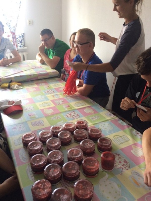 Kiedy wsiedliśmy do autokaru pod szkołą, zostaliśmy pożegnani przez panią Dyrektor Małgorzatę Woźniak, która życzyła nam obfitych truskawkowych zbiorów. Na miejscu w Łapalicach już przy wjeździe do gospodarstwa, czekała na nas gospodyni pani Marzena Dejk. Zostaliśmy bardzo serdecznie przywitani, zaproszeni do domu gdzie mogliśmy się posilić po podróży. Następnie zostaliśmy podzieleni na dwie grupy. Jedna wybrała się z gospodarzem panem Adamem aby zobaczyć jak wygląda chlewnia, licząca 300 sztuk trzody. Mogliśmy wziąć na ręce małe trzytygodniowe prosiaczki. Następnie poszliśmy na łąkę gdzie narwaliśmy trawy i koniczyny, którą mogliśmy nakarmić kozy, konia w Mini ZOO. Zobaczyliśmy bażanta złocistego, kury ozdobne, gołębie pocztowe, pawia, króliki, świnki morskie, koszatniczki i wiele innych zwierząt. Druga grupa w tym czasie obierała i kroiła świeże, kaszubskie truskawki by przygotować z nich pachnące konfitury. Obie ekipy, które przygotowywały konfitury pracowały zgodnie, sprawnie, w miłej atmosferze. Wszyscy uczniowie, nauczyciele i opiekunowie byli zachwyceni dobrą energią jaka płynęła od gospodarzy, uśmiechem i sercem na dłoni. Koniecznie chcemy wrócić do gospodarstwa jesienią.