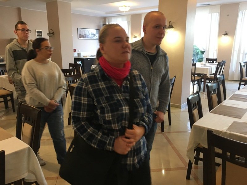 Pierwsza tegoroczna wycieczka instruktażowa odbyła się do Hotelu Victoria w Bolszewie. Po raz trzeci hotel przyjął uczniów z naszej placówki bardzo serdecznie.Młodzież z I klasy Branżowej Szkoły I stopnia po obiekcie oprowadzała Pani Agnieszka. Uczniowie rozpoczęli zwiedzanie od recepcji, przez restaurację, kuchnię, sale konferencyjne, część rekreacyjną (basen, bowling, gabinety masażu itp.), po przestronne pokoje hotelowe. Największe zainteresowanie wzbudził apartament, w którym młodzież mogła zaobserwować wyposażenie jednostki mieszkalnej jak i węzła higieniczno-sanitarnego z wszelkimi udogodnieniami jednostki apartamentowej tj. minibarek, lodówka, dwie łazienki. Każdy mógł wczuć się w rolę pracownika hotelu dzięki między innymi: obsłudze wózka do transportu bagażu.Uczniowie pokazali swoje zainteresowanie pracą w obsłudze hotelowej. Zadawali mnóstwo pytań, na które pracownicy hotelu chętnie odpowiadali. Z pewnością uczniowie naszego ośrodka jeszcze nie raz chętnie odwiedzą ten obiekt.