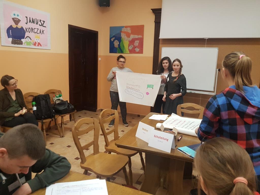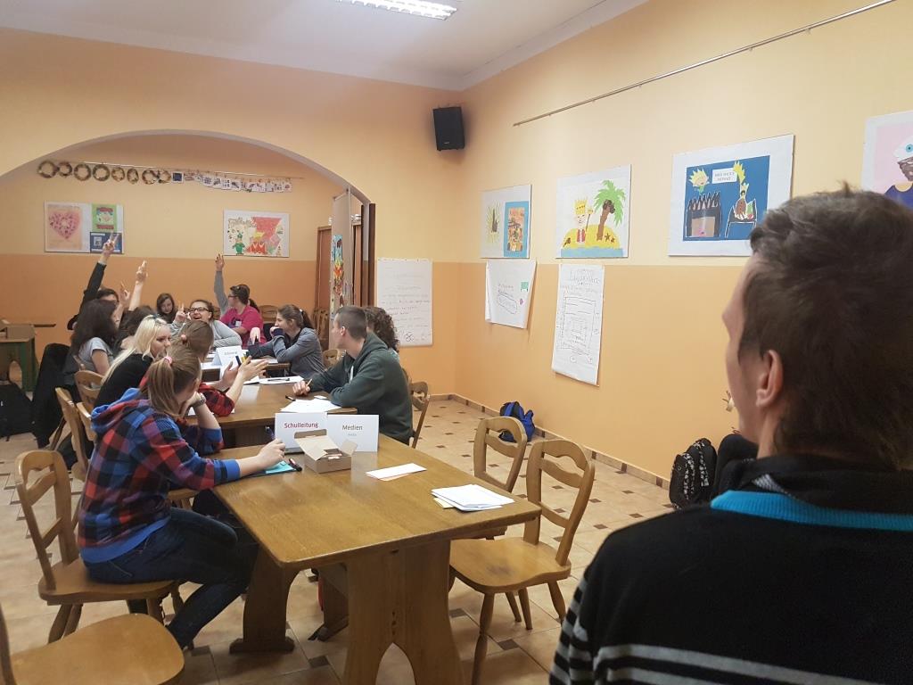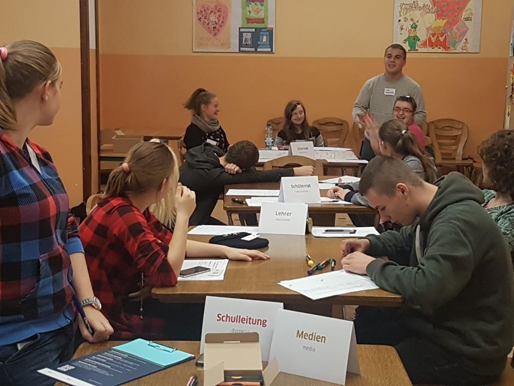 9 listopada zespół uczniów realizujących projekt „Deutsch hat klasse” uczestniczył w zajęciach z lektorem Goethe Institut Warszawa. W ramach spotkania pani Monika Langowska przygotowała dla nas grę symulacyjną.