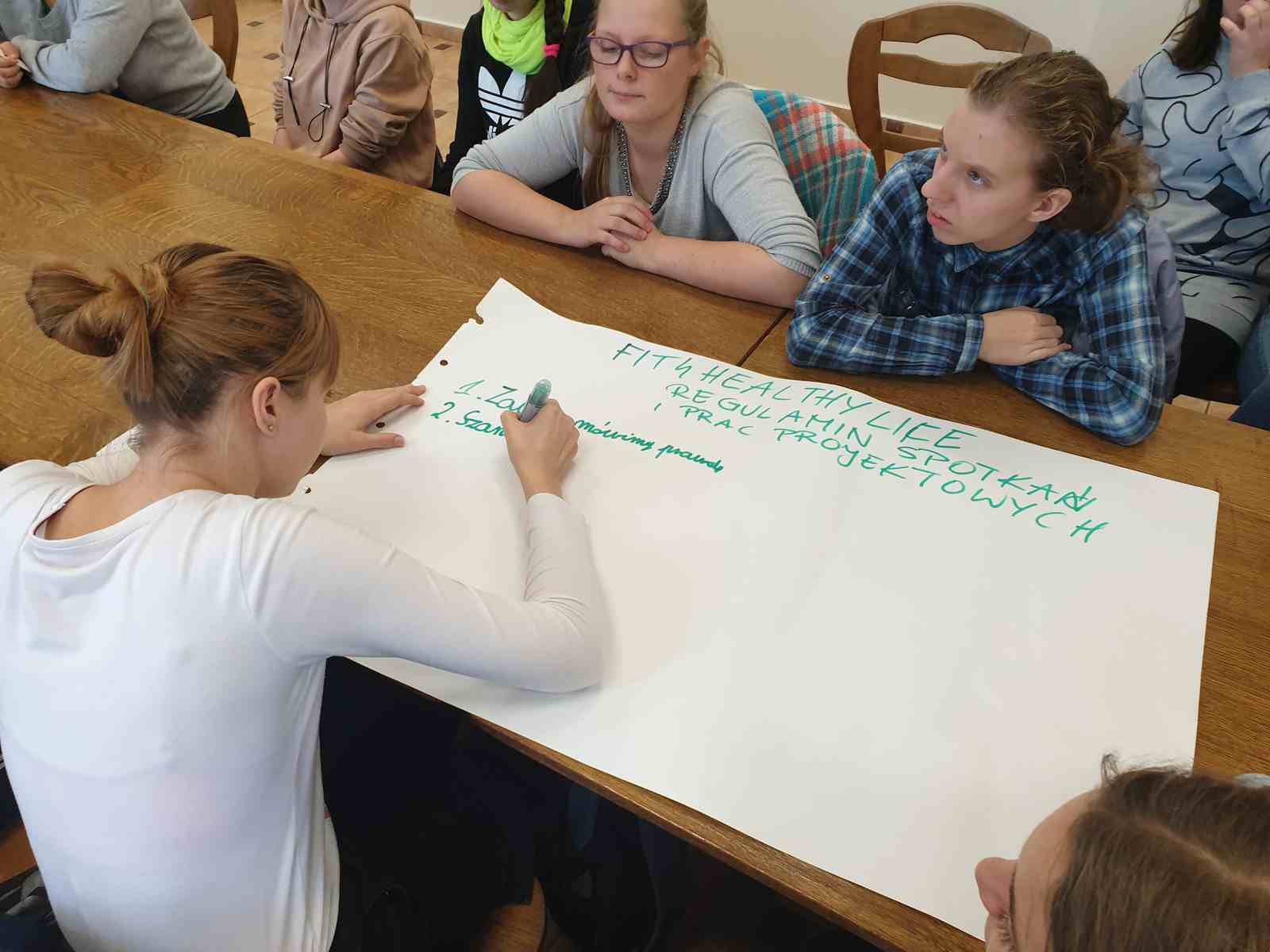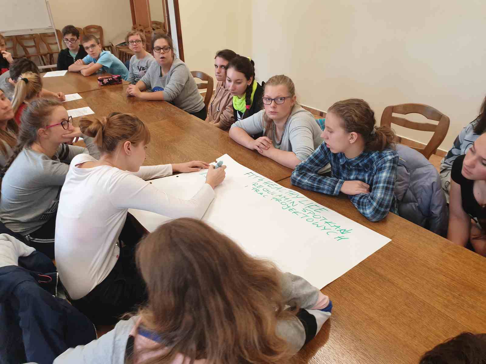 Na początku zapoznaliśmy uczniów z harmonogramem działań projektowych oraz przypomnieliśmy zasady uczestnictwa w projekcie. Następnie wspólnie opracowaliśmy Regulamin spotkań i prac projektowych. Wszyscy uczestnicy zadeklarowali wolę przestrzegania Regulaminu. Treść przygotowanego dokumentu przepiszemy na komputerze, po to, aby móc własnoręcznym podpisem potwierdzić swoje stanowisko.