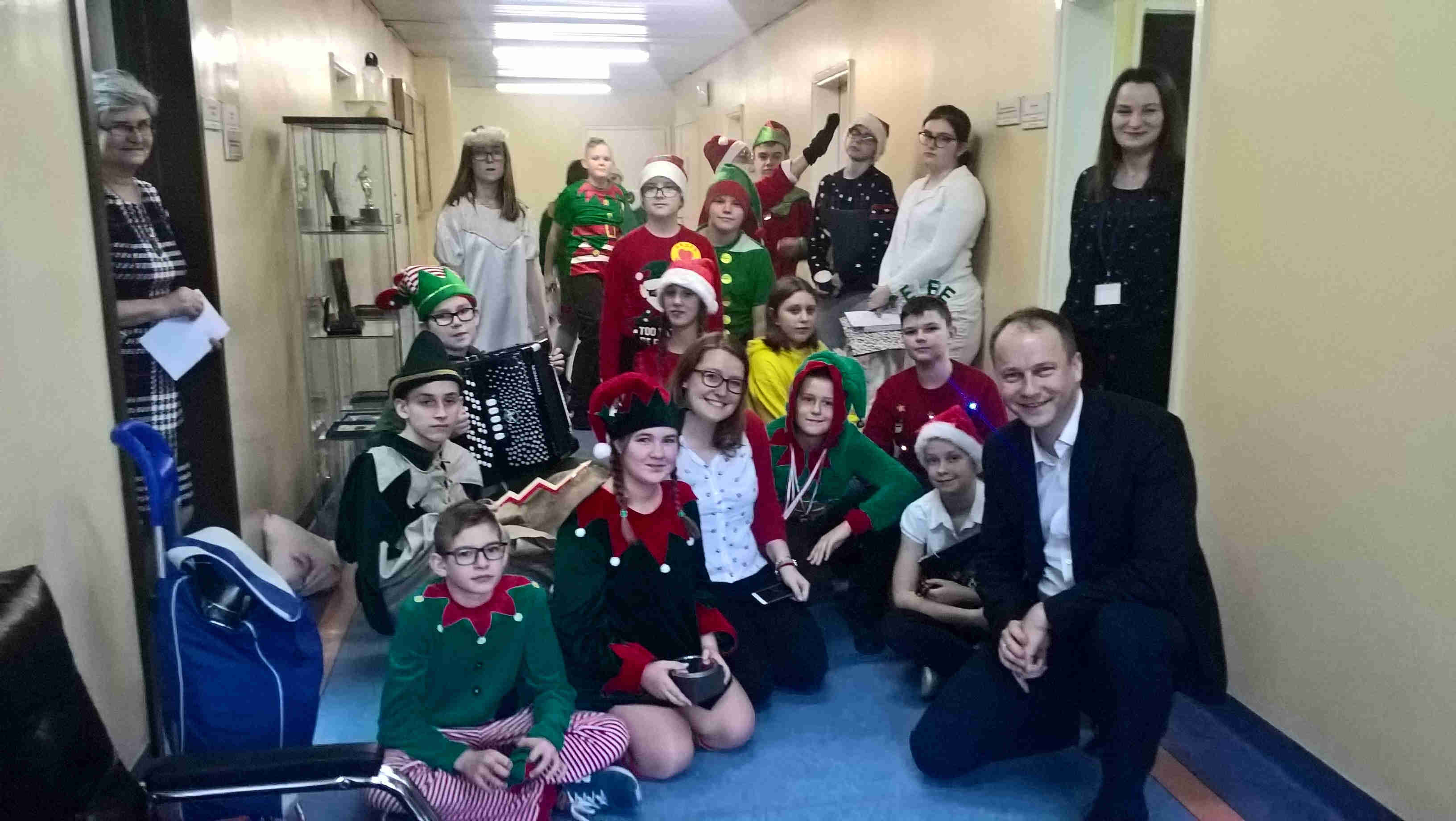 Uczniowie z grupy wolontariatu ze Szkoły Podstawowej nr 10 w Gdyni, pod czujnym okiem pani Emilii Konicz, przygotowali dla uczniów-pacjentów wejherowskiego szpitala występ artystyczny oraz wiele upominków, atrakcji i niespodzianek mikołajkowych.