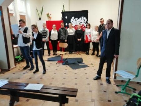 Dnia 14 listopada 2018 roku młodzież SSPdP i BSIS uczciła rocznicę odzyskania przez Polskę niepodległości. Tego dnia w auli szkolnej odbył się montaż słowno- muzyczny, który przypomniał historię naszego kraju, naszej ojczyzny i drogi jakie przeszła, zanim stała się wolna i niepodległa. Młodzież recytowała z pamięci wiersze o tematyce patriotycznej a wszyscy wspólnie śpiewali niepodległościowe pieśni i piosenki. Spotkaniu towarzyszyła podniosła i uroczysta atmosfera. Oprawą muzyczną uroczystości zajęła się pani Anna Brzezińska we współpracy z panią Agnieszką Budnik, salę upiększyła pani Anna Nowicka, zaś nad całością imprezy czuwały panie Jolanta Kotkowska