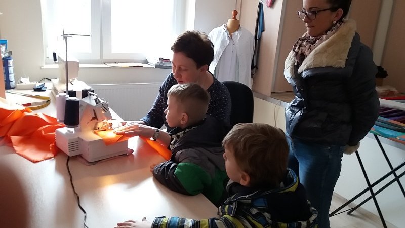 Ponieważ lubimy poznawanie otaczającego nas świata, przez doświadczanie i kontakt z tym, czego się uczymy, wybraliśmy się do pracowni krawieckiej PZKS. Tam Pani Iwona pokazała nam, czym zajmuje się krawcowa. Był tam manekin, nici, deski do prasowania, żelazka, miara krawiecka i najciekawsze dla nas maszyny do szycia. Bacznie przyglądaliśmy się pracy maszyn, zaintrygowani jej działaniem.
