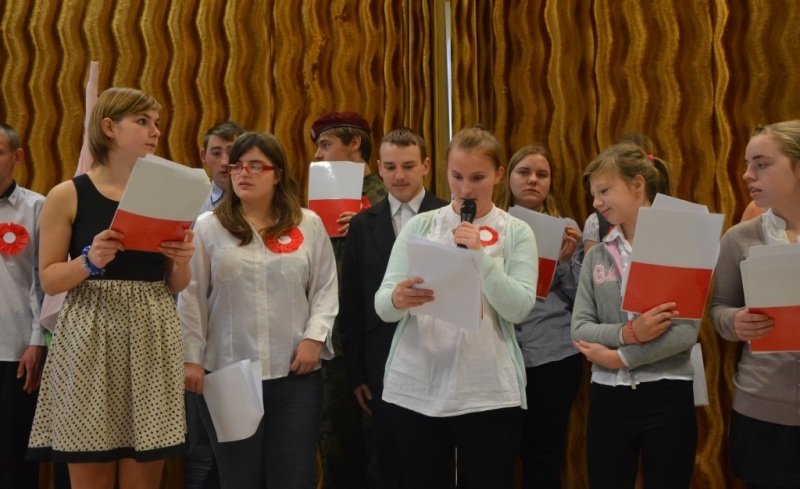 10 listopada gościliśmy w szkole podstawowej wychowanków naszego internatu , którzy zorganizowali dla nas piękną patriotyczną akademię z okazji Rocznicy Odzyskania Niepodległości Polski. Program przedstawiony przez młodzież był bardzo wzruszający, podniosły i uroczysty. Wszystkim podobały się wiersze i pieśni, które wspólnie z artystami śpiewaliśmy w czasie uroczystości.