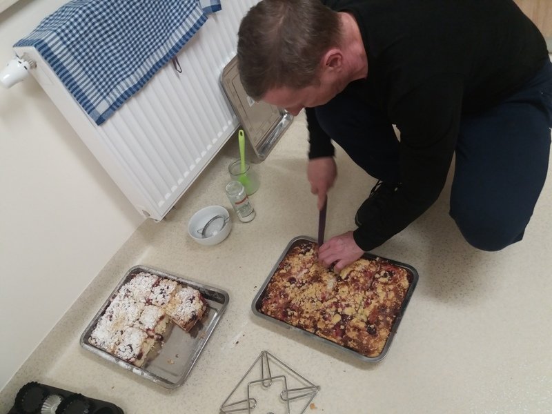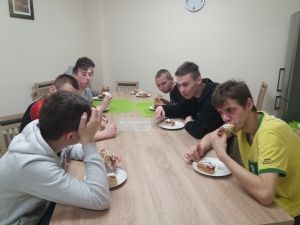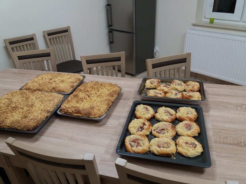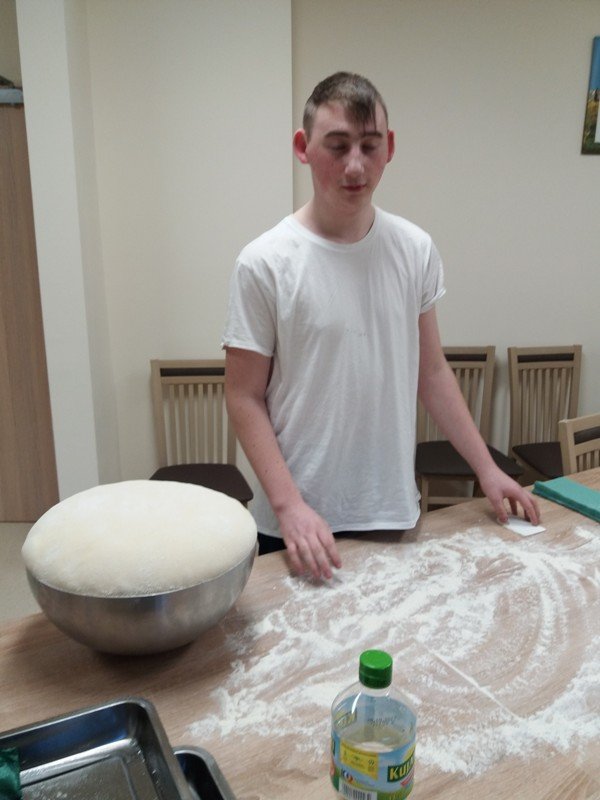 Wychowankowie Gr. I pod czujnym okiem Pana Ryszarda Zielonki upiekli pyszną drożdżówkę, na uroczystość z okazji Przywitania Nowych Wychowanków. Drożdżówka była nie lada niespodzianką dla wszystkich mieszkańców internatu, była pyszna i pachnąca.
