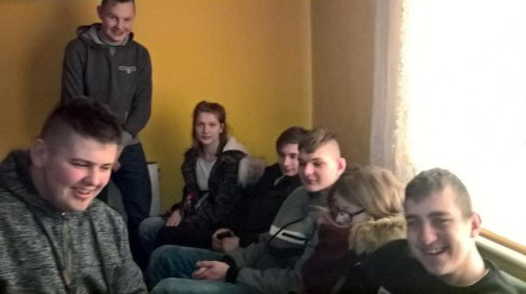 Są tacy, którzy marzą o tym, żeby nie chodzić do szkoły, cały dzień siedzieć w domu i nic nie robić. Są też i tacy , którzy bardzo tęsknią za szkołą. Nasz kolega Tomek bardzo chciałby chodzić z nami na lekcje ale okropna choroba nie pozwala mu na to. On ma nauczanie indywidualne w swoim domu ale bardzo chciałby chodzić z nami do szkoły, spotykać się z kumplami, brać udział w zawodach sportowych. Wiemy to od niego. Byliśmy u niego w Sasinie całą klasą już dwa razy. Raz przed świętami z prezencikami mikołajkowymi. Drugi raz na Walentynki. Tak się złożyło że Tomek miał 16 urodziny i pojechaliśmy do niego z tortem. Pyszny tort czekoladowy upiekła dla nas mama Łukasza. Tomek i jego mama byli trochę wzruszeni gdy przekazaliśmy pozdrowienia od koleżanek, kolegów i nauczycieli ze szkoły. Zamierzamy znowu go odwiedzić , opowiedzieć mu o wszystkim i porozmawiać z nim. Trzymamy kciuki za jego szybki powrót do zdrowia i do naszej klasy. Koleżanki i koledzy z klasy III b gimnazjum z wychowawcą.