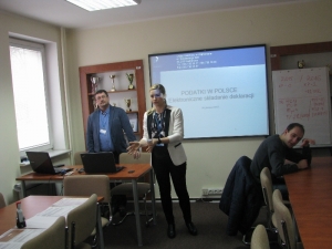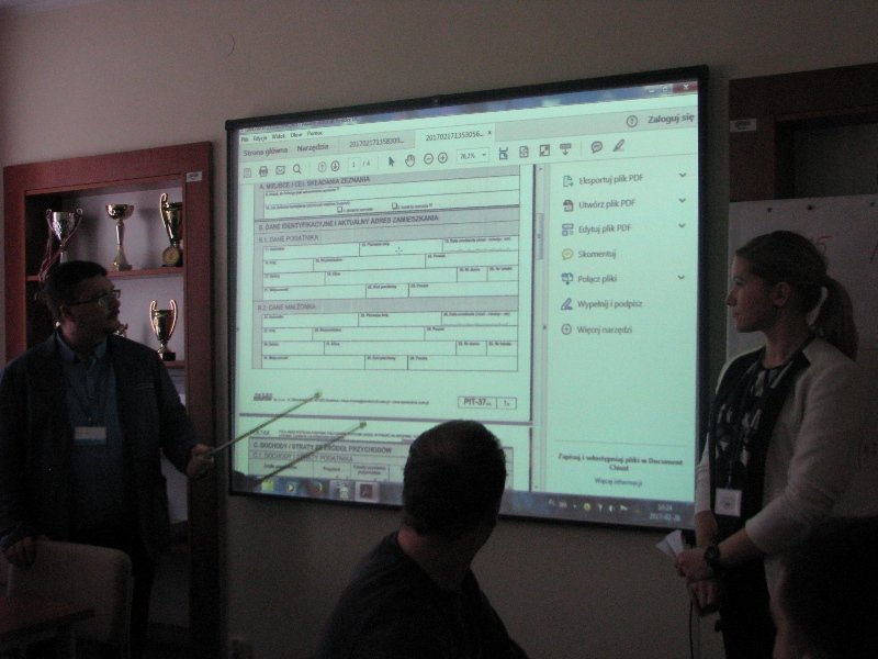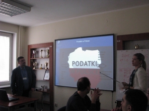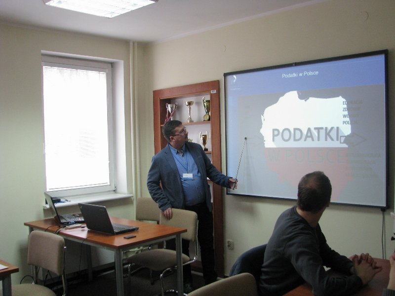 Pracownicy Urzędu zapoznali młodzież z zadaniami i strukturą organizacyjną Urzędu Skarbowego. Uczniowie poznali czym są i dlaczego płacimy podatki ,oraz jakie to ma znaczenie dla całego społeczeństwa. Młodzież poznała podstawowe prawa i obowiązki podatnika. Zaprezentowano także uczniom coraz częściej wykorzystywane przez podatników możliwości składania zeznań rocznych za pośrednictwem Internetu z wykorzystaniem systemu e-Deklaracje. Uczniowie dowiedzieli się również , jak ważne jest prawidłowe wypełnianie obowiązków podatkowych. Podczas warsztatów młodzież ćwiczyła wypełnianie deklaracji podatkowych PIT-36 oraz PIT-37. Uczniom zostały przybliżone zasady ogólnopolskiej akcji „Loterii paragonowej”. Po warsztatach młodzież z nauczycielami i pracownikami Urzędu wybrała się na przechadzkę po Urzędzie.