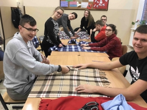 Cykl warsztatów to nie tylko wspólna praca i zabawa, ale przede wszystkim pewien sposób niesienia pomocy Tym, którzy tej pomocy potrzebują. Celem Tych warsztatów było stworzenie przepięknych poduszek tak zwanych precelków, które zostaną przekazane na kiermasz bożonarodzeniowy, a pieniążki przekazane tym, którzy tego potrzebują. Uczniowie czynią dobro i rozwijają swoje umiejętności manualne. Autorami prac są klasy szkoły branżowej 2b i 3a wraz z Paniami Angeliką Matuszczak i Martą Gradzik. Niebawem efekt końcowy
