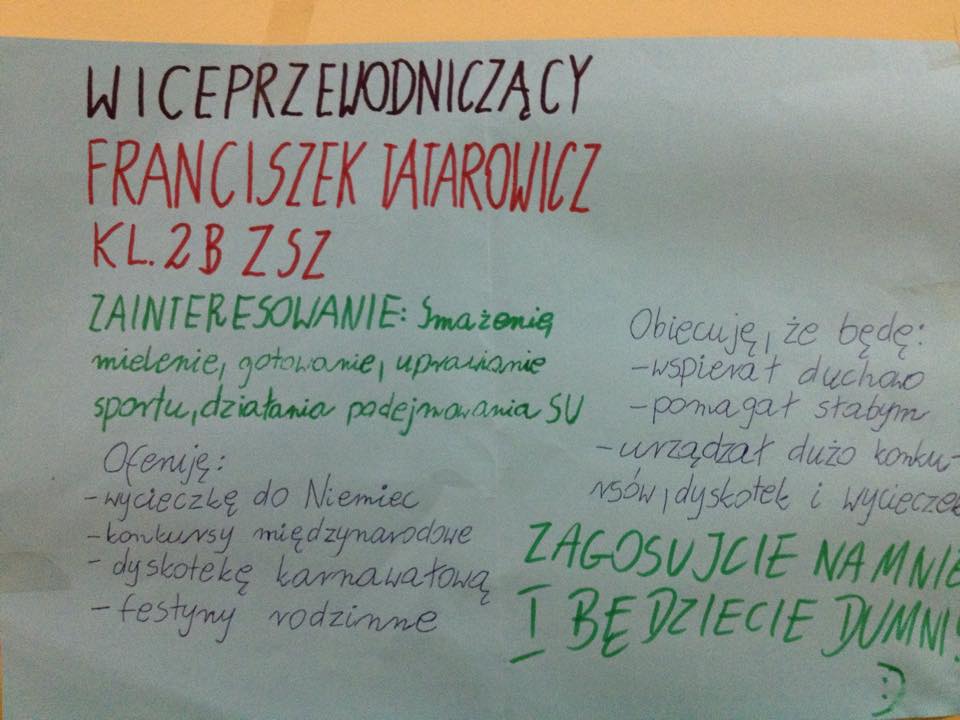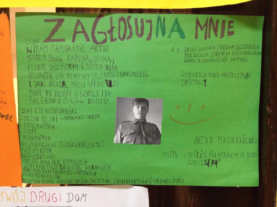 W ostatnim dniu września w naszej szkole ogłoszono wybory na najlepszych kandydatów do Samorządu Uczniowskiego.
