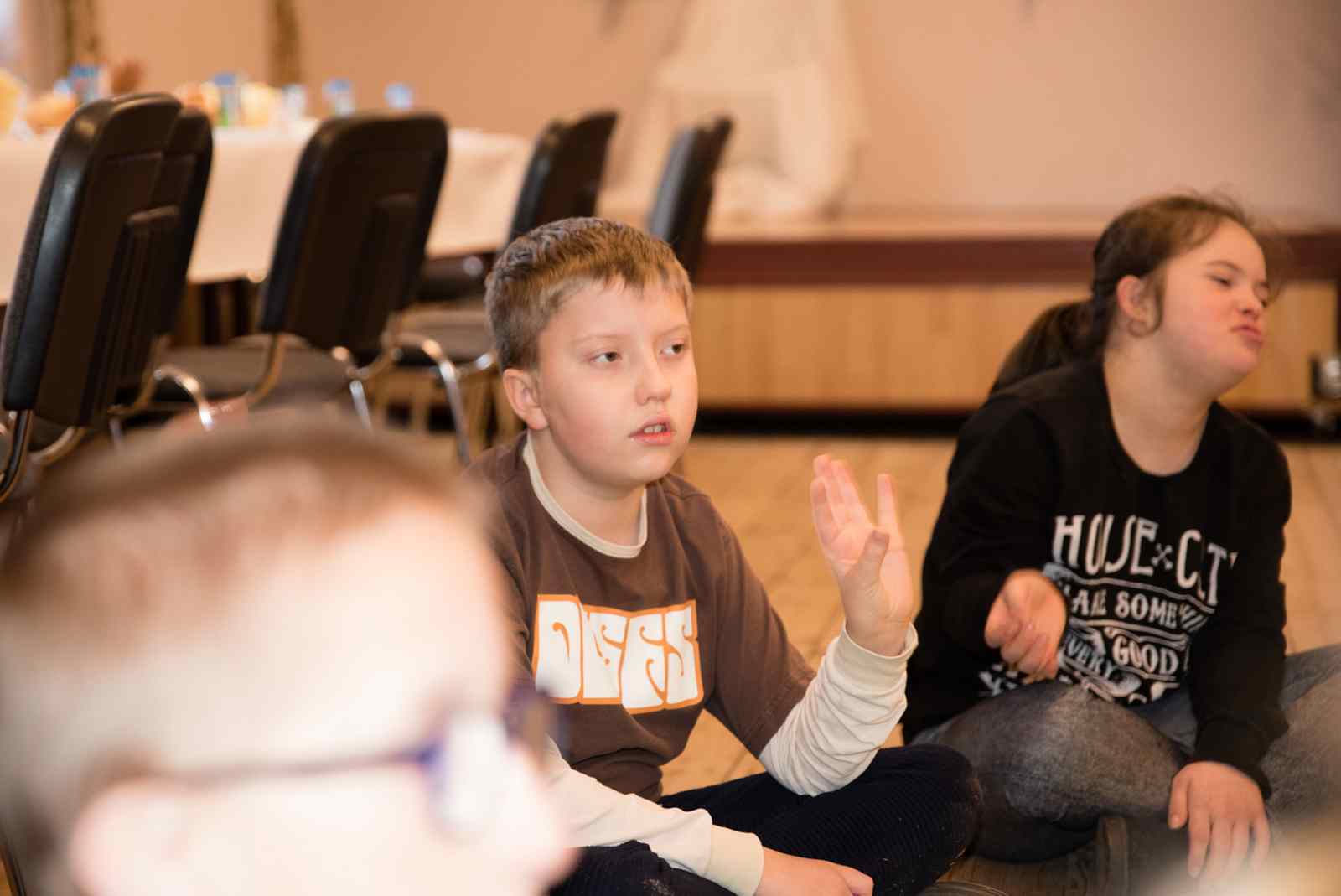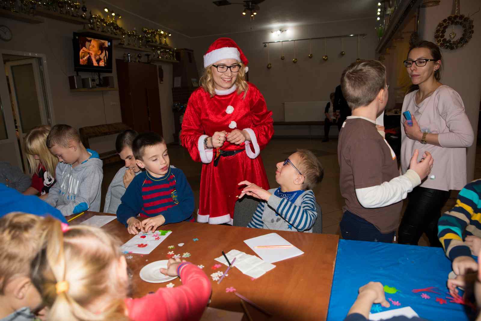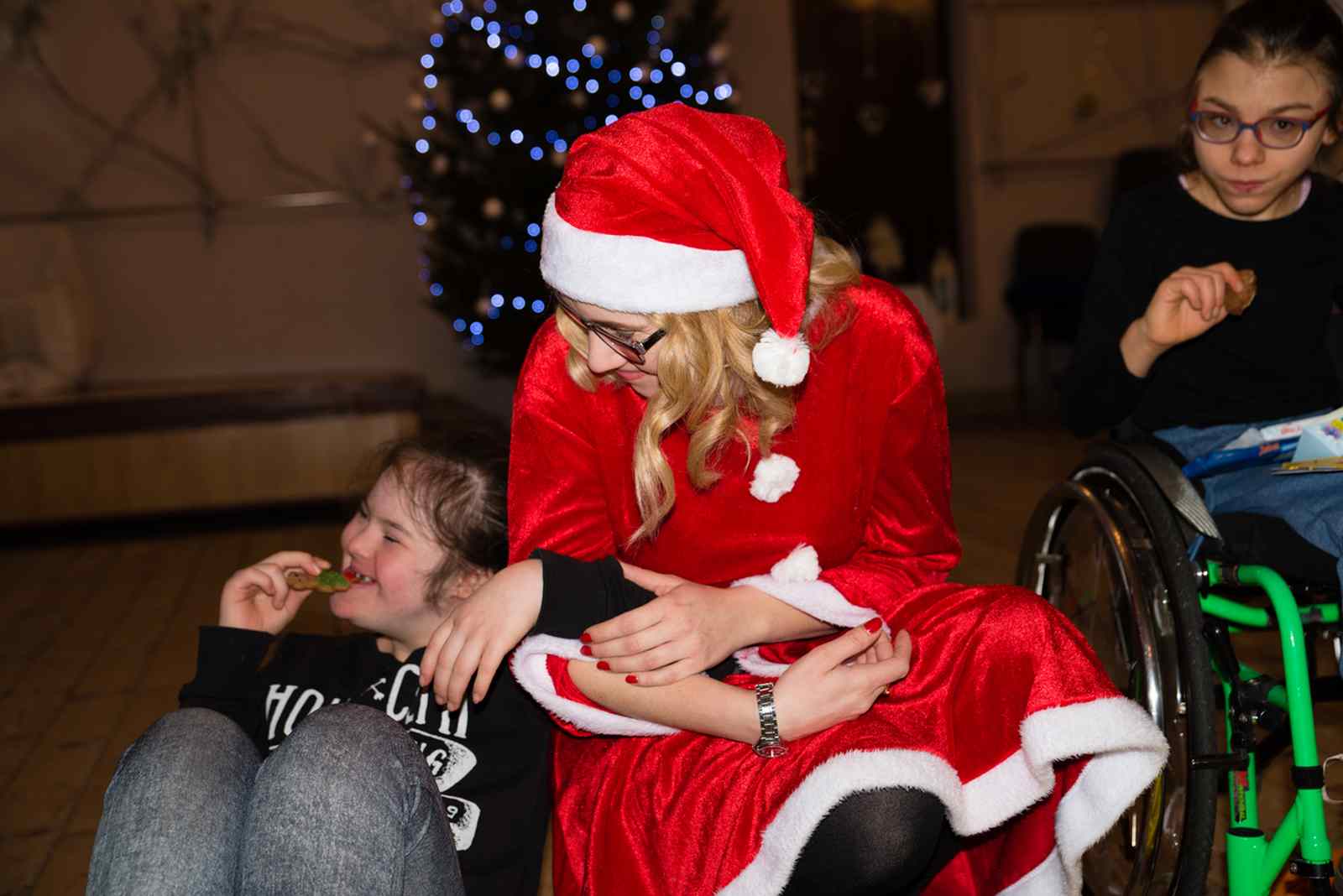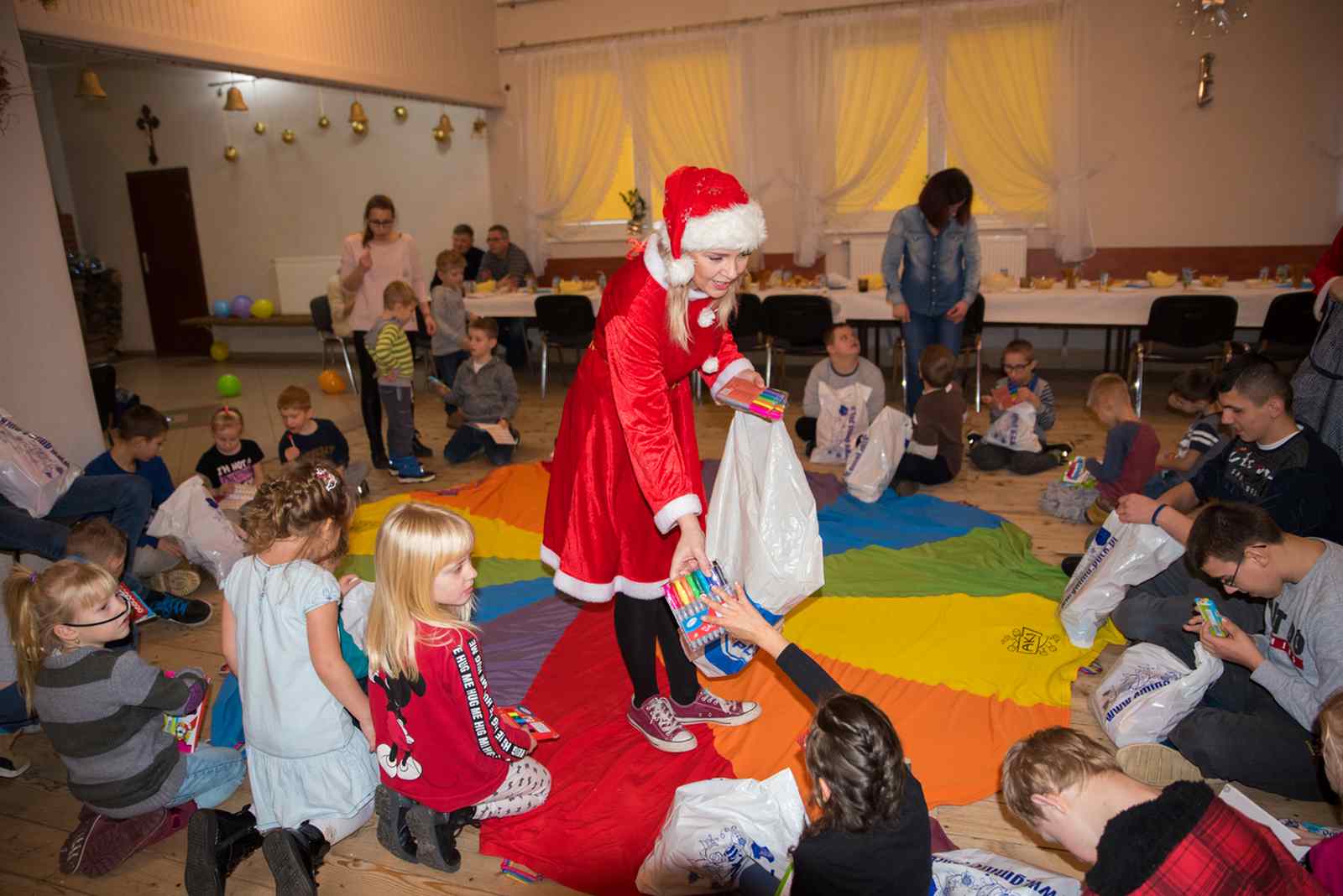 Jak co roku, tym razem 10 grudnia 2019r., nasi podopieczni z klasy II/IIIa oraz VII/VIIIa odwiedzili Wiejski Klub Kultury w Leśniewie gdzie spotkali się z wychowankami miejscowego przedszkola. Spotkanie rozpoczęliśmy od wspólnego przywitania się oraz wysłuchania opowiadania o „Brzydkim kaczątku”. Dużo radości sprawiły dzieciom, ale i dorosłym zabawy z wykorzystaniem chusty Klanzy oraz wspólne wykonywanie świątecznych kartek. Uczniowie otrzymali podarunki od wychowanków przedszkola, ale również od Mikołaja co uradowało naszych podopiecznych. Niespodzianką była też wata cukrowa, która wywołała duży uśmiech na twarzach dzieci. Spotkanie przebiegało w przemiłej świątecznej atmosferze, pełnej integracji i wzajemnej życzliwości.