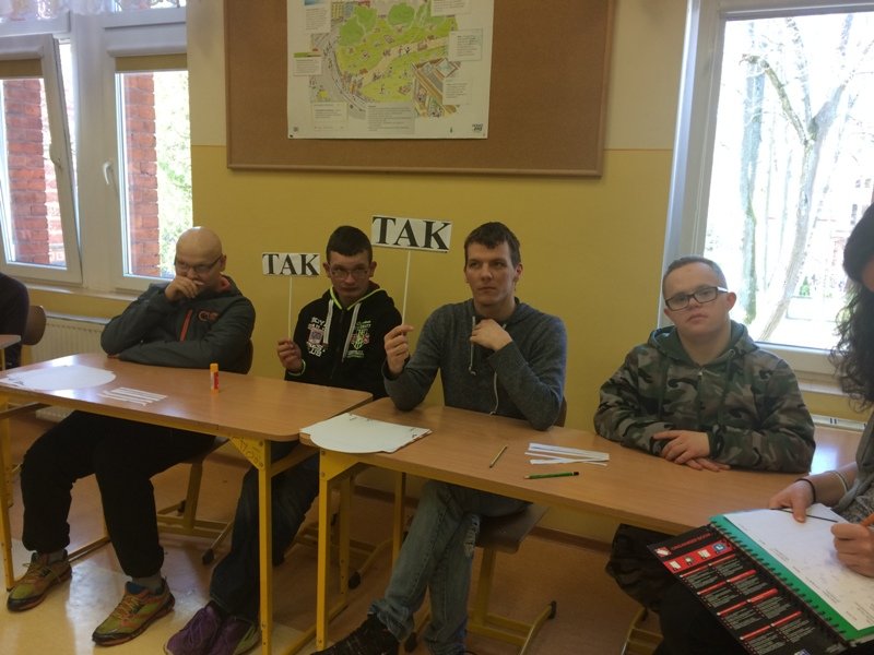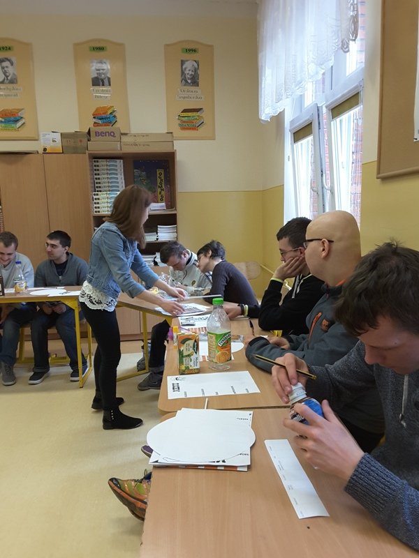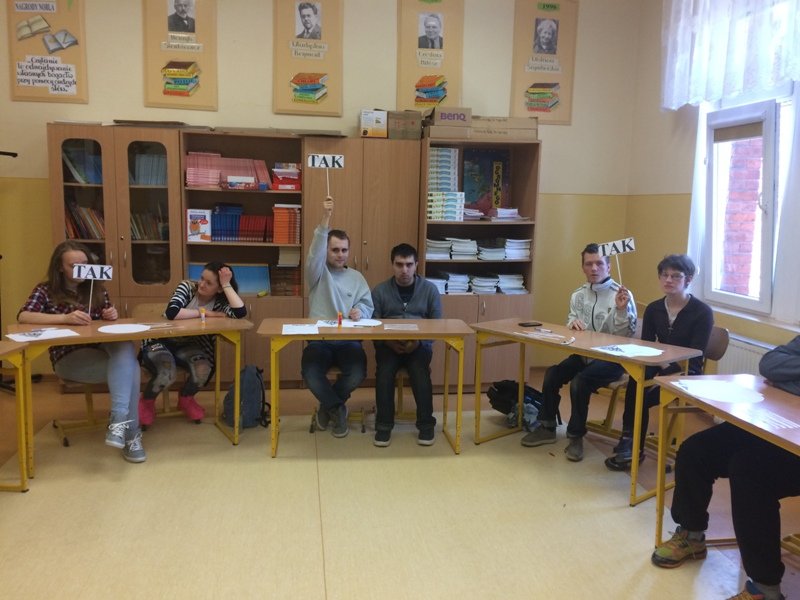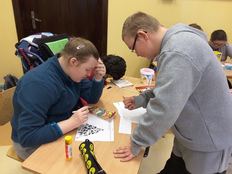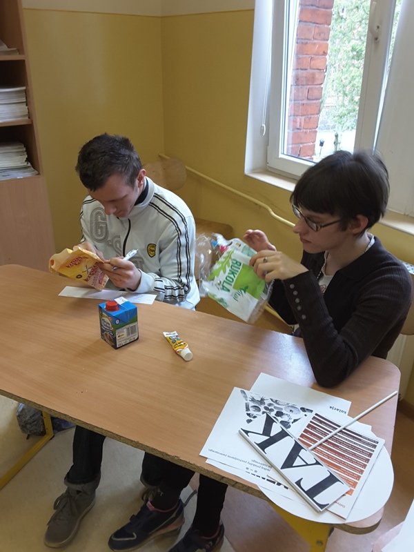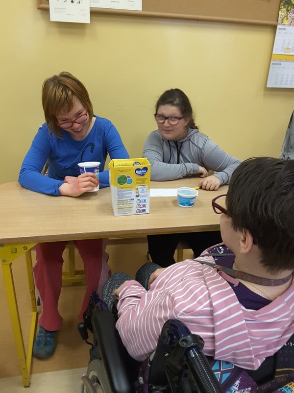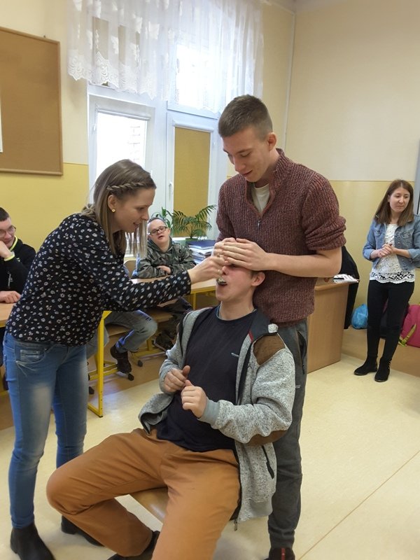„Zdrowo jem i o odżywianiu wszystko wiem” – to hasło przewodnie konkursu, który odbył się 28 marca w ramach projektu edukacyjnego Zdrowy Styl Życia oraz w ramach programu Trzymaj Formę. Celem konkursu było propagowanie właściwych nawyków żywieniowych i aktywnego trybu życia. Organizatorzy, czyli uczniowie klasy III gimnazjum wraz ze swoimi opiekunami p. A. Kroplewską i p. N. Wolińską przygotowali pięć zadań dla Uczniów Szkoły Specjalnej Przysposabiającej do Pracy. Zadania polegały na stworzeniu piramidy żywienia, właściwym odczytywaniu etykiet, układaniu zdrowego menu, rozpoznawaniu właściwych i niewłaściwych nawyków żywieniowych, oraz rozpoznawaniu smaków, które sprawiło uczniom najwięcej radości. W konkursie wzięło udział 8 par uczniów, a wśród nich najlepsi okazali się uczniowie klasy III a Dawid Duda i Jarosław Maszota, którzy wykazali się ogromną wiedzą, a także umiejętnością pracy zespołowej.