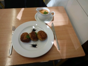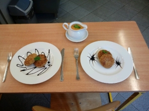 Zadanie egzaminacyjne polegało na przygotowaniu zgodnie z zamieszczonymi recepturami po dwa zestawy potraw składających się z kotletów z ziemniaków i mięsa oraz sosu pomidorowego.