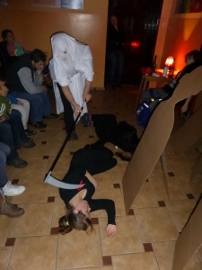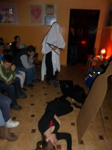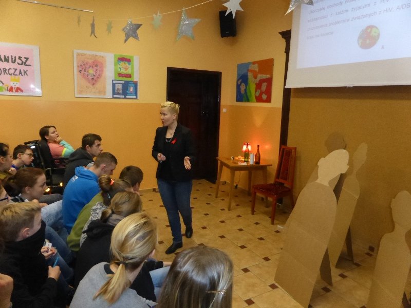 W dniu 30.11.2016r. w naszej szkole obchodziliśmy Światowy Dzień AIDS. Szkolna grupa teatralna „Kotlet mielony” (w składzie: Wiktor Pek, Jarek Maszota, Ula i Aniela Potrykus, Klaudia Kierznikiewicz oraz Kasia Godziek pod opieką Pani Małgosi Wysokińskiej i Uli Gajdemskiej) zaprezentowała wymowny spektakl pt. „Trudna miłość”. Zawarte w nim treści miały na celu unaocznić młodzieży naszego Gimnazjum, ZSZ i SSPdP w jaki sposób można doprowadzić do zakażenia wirusem HIV i jakie są jego konsekwencje.