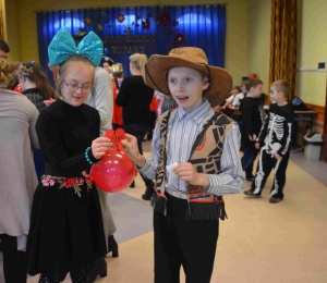 Nasze dzieci, jak przystało na bal karnawałowy były świetnie przygotowane. Sala wypełniła się pięknie przebranymi uczniami i nauczycielami. Chętnie zgłaszali się do konkursów i bawili przy muzyce. Uczestnicy balu gromkimi brawami podziękowali swoim kolegom za występ i zorganizowanie zabawy.