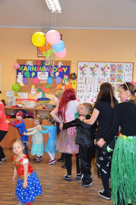 Dnia 13 lutego 2018 roku, w przedszkolu odbył się Bal karnawałowy zorganizowany przez nauczycieli przedszkola i terapeutów prowadzących zajęcia WWR. Zaproszeni goście, uczestnicy zajęć Wczesnego wspomagania rozwoju dziecka i przedszkolaki, bawili się przy wesołej, skocznej muzyce. Podczas balu odbywały się konkursy, zabawy integracyjne, tańce. Atmosfera była radosna, sprzyjała integracji dzieci oraz radosnej zabawie. Bal zakończył się rozbiciem piniaty, z której posypał się słodki poczęstunek.
