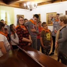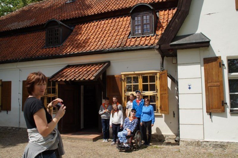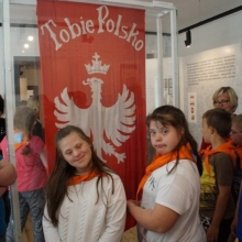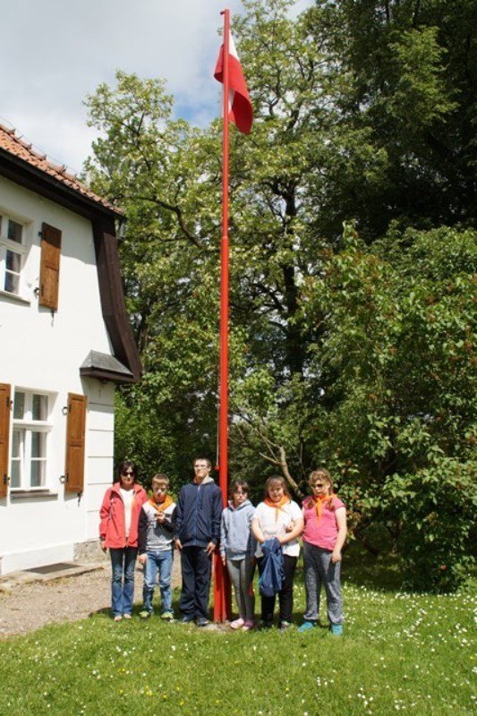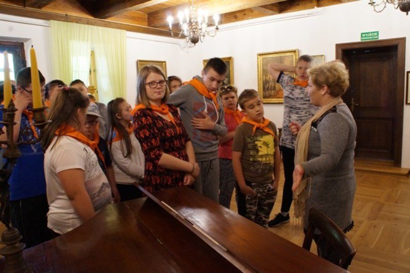 Kolejnym punktem wycieczki była wizyta w Muzeum Hymnu Narodowego. Zauroczyła nas tam architektura starego dworku Wybickich oraz piękno polskiej wsi, na której tle wybijał się wizerunek Orła Białego. Sympatyczna pani przewodnik w interesujący sposób przeprowadziła lekcję muzealną „Śladami Mazurka Dąbrowskiego”. Połączenie tradycji z nowoczesnymi środkami wyrazu (tablice interaktywne, sprzęt audiowizualny) sugestywnie wpłynęły na uczucia patriotyczne naszych uczniów i uwypukliły znaczenie symboli narodowych.