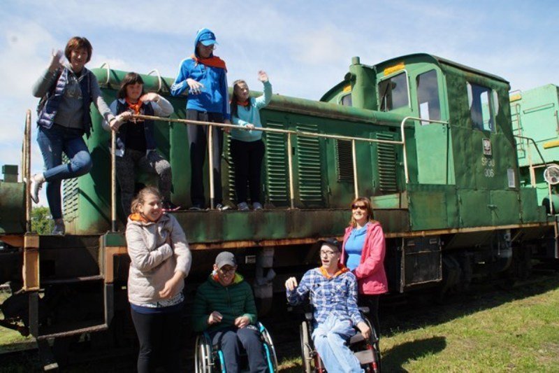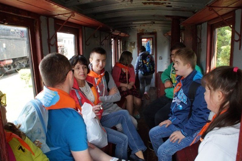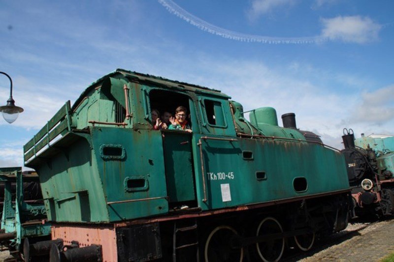 Wielką radość sprawiło uczestnikom oglądanie „z bliska” taboru kolejowego w stylu retro (parowozów, lokomotyw, historycznych wagonów). Dużym wyzwaniem dla niektórych okazało się wejście po wysokich stopniach do wybranej lokomotywy. Atrakcją wycieczki była kolejka wąskotorowa. Mali i duzi mieli okazję zobaczyć ruchomą makietę stacji kolejowej „Kościerzyna” oraz kolej magnetyczną.