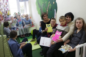 Uczniowie wzięli udział w lekcji bibliotecznej, wysłuchali opowiadania „O dzieciach, które kochają książki”, a następnie chętnie uczestniczyli w warsztatach plastycznych. Podczas spotkania panie bibliotekarki zapoznały uczniów z zasadami zachowania w bibliotece oraz zachęcały do przychodzenia z rodzicami, aby wypożyczać książki.