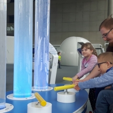 HYDROŚWIAT – tam wcieliliśmy się w role inżynierów wodnych, konstruowaliśmy i wprawialiśmy w ruch skomplikowane mechanizmy, poznaliśmy działanie śluz, tam i śruby Archimedesa.