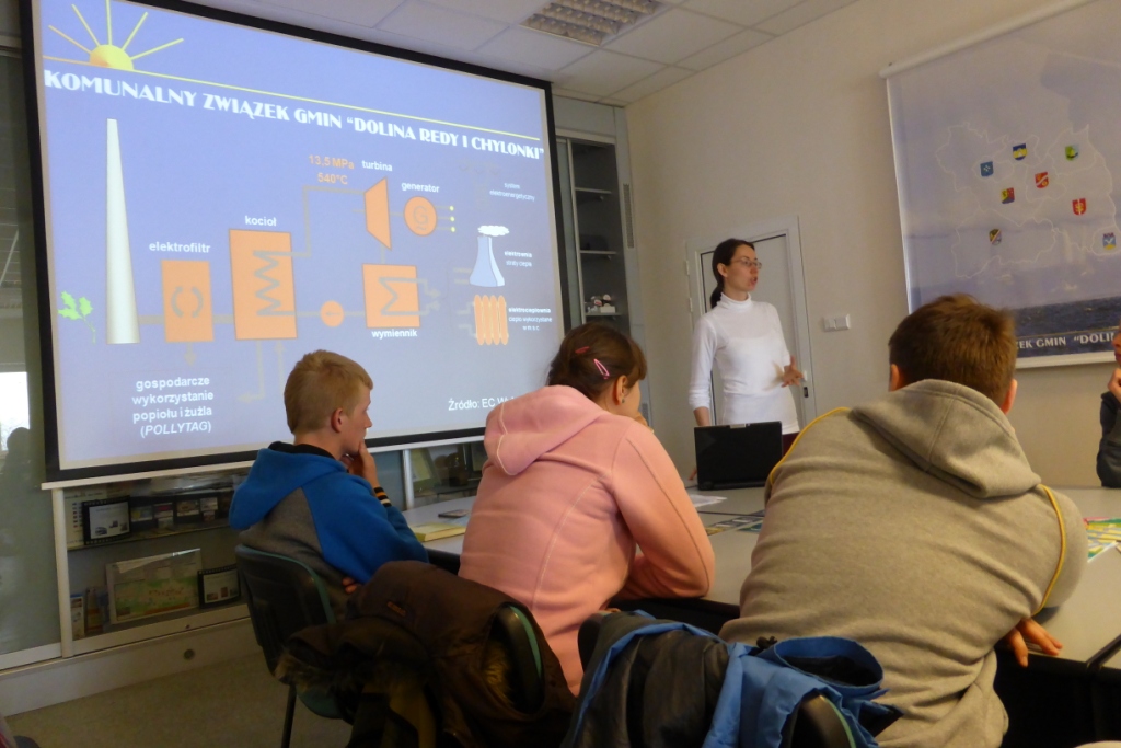 ekologicznej. W warsztatach wzięło udział 28 uczniów, a opiekunami grupy byli pani Agata Skibińska – Orysiak, pani Aleksandra Kotowicz oraz pan Marek Fuhrmann. W pierwszej kolejności udaliśmy się do siedziby Związku do Gdyni, gdzie wzięliśmy udział w zajęciach prowadzonych przez panią Monikę Rak, która omówiła zagadnienia z zakresu wytwórców i dystrybutorów ciepła. Dowiedzieliśmy się jak odbywa się produkcja energii w skojarzeniu (kogeneracja), jakie są źródła energii oraz obejrzeliśmy film pt. „Ochrona powietrza”. Następnie pojechaliśmy do Zakładu Energetyki Cieplnej OPEC w Wejherowie. Tam z bliska poznaliśmy największego dystrybutora energii cieplnej dla Trójmiasta i okolic. Zobaczyliśmy