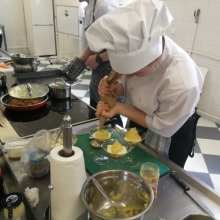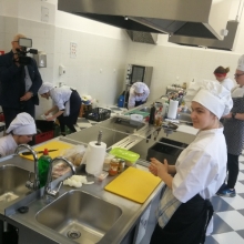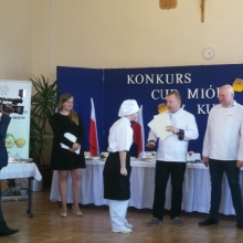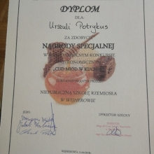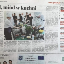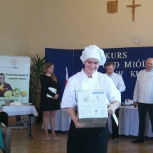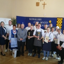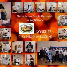 Odpowiedzieliśmy na zaproszenie Niepublicznej Szkoły Rzemiosła w Wejherowie i tak oto 11 kwietnia 2018 roku o godzinie 9.00 rozpoczęła się II edycja Międzyszkolnego Konkursu pod nazwą „Cud miód w kuchni”. Do konkursu przystąpiło 6 szkół : Niepubliczna Szkoła Rzemiosła z Wejherowa, Powiatowy Zespół Szkół nr 3 im. Ks. Edmunda Roszczynialskiego  z Wejherowa, Zespół Szkół Ponadgimnazjalnych z Somonina, Zespół Szkół Hotelarsko-Gastronomicznych z Gdyni, Zespół Szkół nr 1 z Władysławowa oraz My czyli Branżowa Szkoła I stopnia Nr 5 z dotychczasowymi oddziałami ZSZ nr 5 w Wejherowie. Łącznie rywalizowało 11 uczestników, którzy oceniani byli indywidualnie za wykonanie potrawy. Każdy przygotowywał danie główne oraz deser, który miał zawierać w swoim składzie naturalny miód pszczeli. Naszą szkołę reprezentowała uczennica klasy 2b Urszula Potrykus. Przygotowania do konkursu trwały od dwóch tygodni pod czujnym okiem szefa kuchni Waldemara Góreckiego i Urszuli Treder. Prace młodych kucharzy oceniali:  Sławomir Miotk – Stary Browar Kościerzyna , Jakub Kozakiewicz – Dwór Polender,  Piotr Struck. Jury miało trudne decyzje do podjęcia, gdyż uczniowie zaprezentowali swoje dania główne i desery na wysokim poziomie. Pierwsze miejsce wywalczył Wojciech Niziński z Zespołu Szkół Hotelarsko- Gastronomicznych z Gdyni, drugie miejsce Agata Mudlaff  z Zespołu Szkół nr 1 z Władysławowa oraz trzecie miejsce Dominika Cieszyńska z Zespół Szkół Ponadgimnazjalnych w Somoninie. Do czołówki również dołączyli Agnieszka Meyer z Niepublicznej Szkoły Rzemiosła Wejherowo oraz Urszula Potrykus z Branżowej Szkoły I stopnia Nr 5 z Wejherowa, które otrzymały NAGRODĘ SPECJALNĄ w postaci sprzętu kuchennego. Nasza uczennica przetarła szlaki dla kolejnych śmiałków rywalizując z tak liczną reprezentacją innych szkół gdzie uczniowie odbywają praktyki w renomowanych restauracjach. Jesteśmy bardzo dumni z udziału Naszej uczennicy w tak prestiżowym konkursie, ponieważ jest to odwaga przygotować potrawę, która niczym nie odbiega od zamieszczonych w kartach menu restauracyjnych i hotelowych.Przepis Naszej uczennicy, który swoim smakiem i wyglądem oczarował jury to Frykadele drobiowe w sosie miodowo – musztardowym oraz Mus z jabłka pieczonego z serkiem mascarpone i amatetto. Liczymy na to, iż w przyszłorocznej edycji nasi uczniowie również wykażą się swoimi wysokimi umiejętnościami kulinarnymi, co utwierdzi ich w przekonaniu, że z powodzeniem mogą stanąć w szranki z innymi uczniami z innych szkół gastronomicznych.