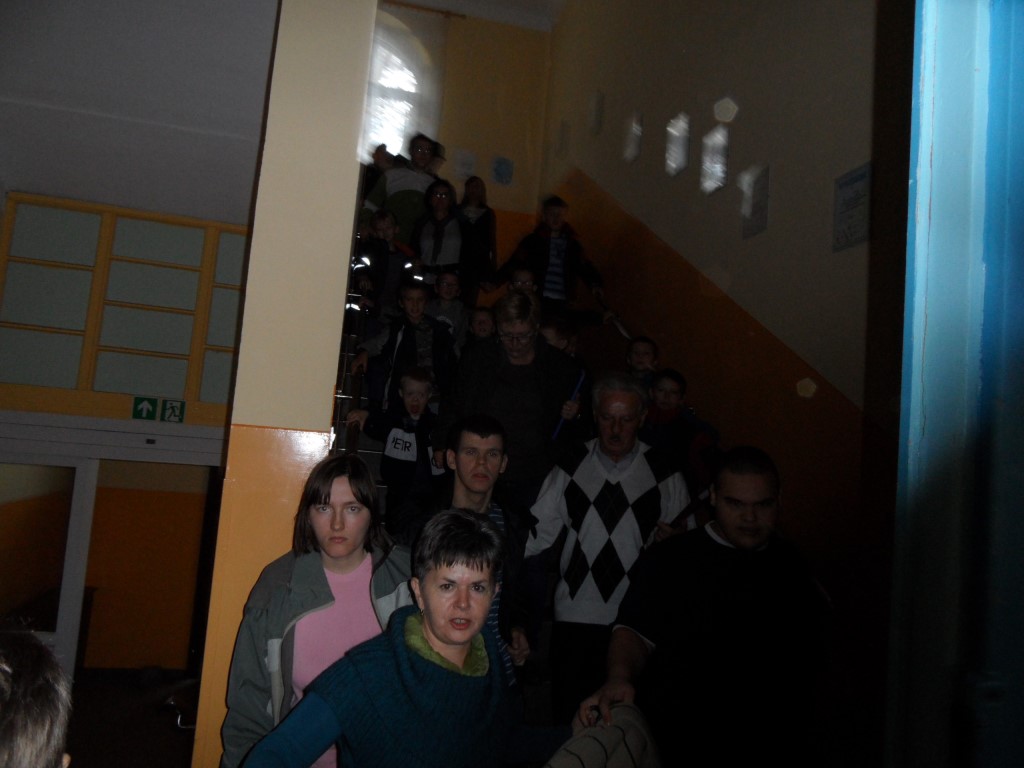 W październiku w całym naszym ośrodku, kolejno w SP, Internacie i ZSZ odbyły się ćwiczenia ewakuacji uczniów z poszczególnych budynków. Ewakuacja polegała na szybkim i zorganizowanym przemieszczaniu osób z miejsc, w których przebywanie mogło by zagrażać życiu lub zdrowiu. W akcji tej brali udział wszyscy uczniowie, nauczyciele i pracownicy którym udało się szybko i sprawnie opuścić budynki. Na boisku szkolnym nauczyciele oddali meldunek, zdając liczbę osób ewakuowanych.