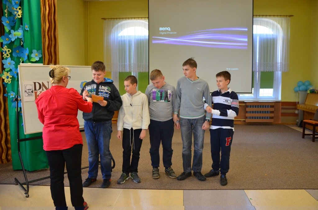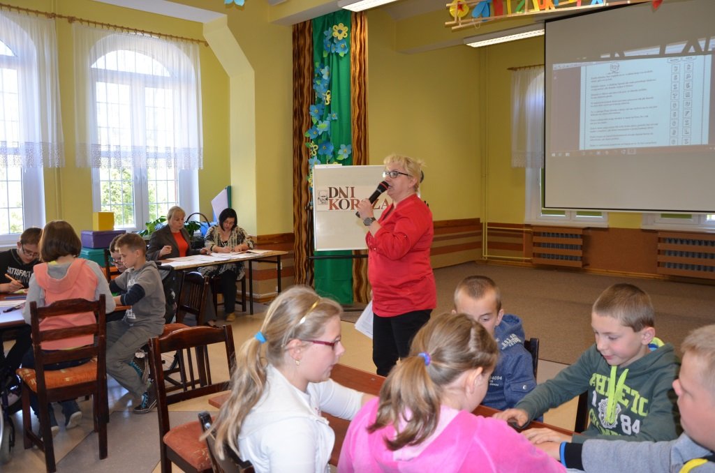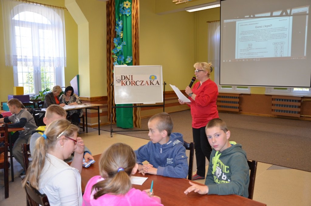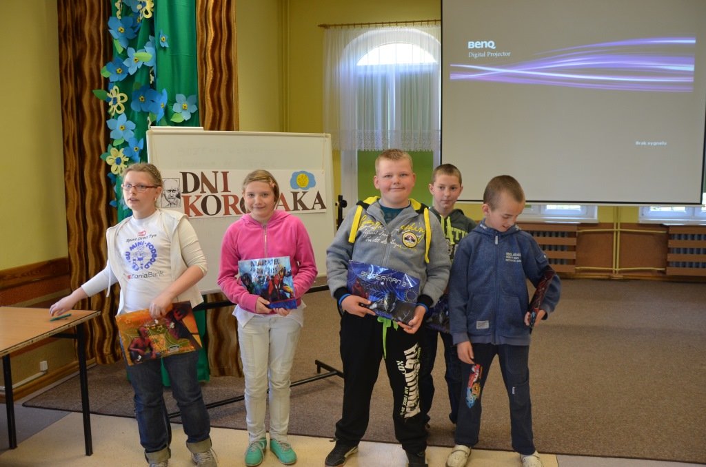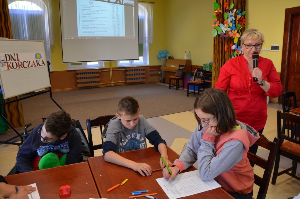 Dnia 28 kwietnia w szkole podstawowej, uczniowie wspólnie obejrzeli prezentację dotyczącą naszego patrona. Odbył się również „Szkolny konkurs wiedzy o patronie szkoły”. Klasy Va, Vb, VIa,VIb zmagały się z zadaniami dotyczącymi życia, działalności i twórczości Janusza Korczaka. Laureatami został zespół w składzie Beata Grubba, Klaudiusz Głodowski, Adam Halmański, Dawid Miszke, Kinga Szczygieł. Tuż prze rozgrywkami uczniowie