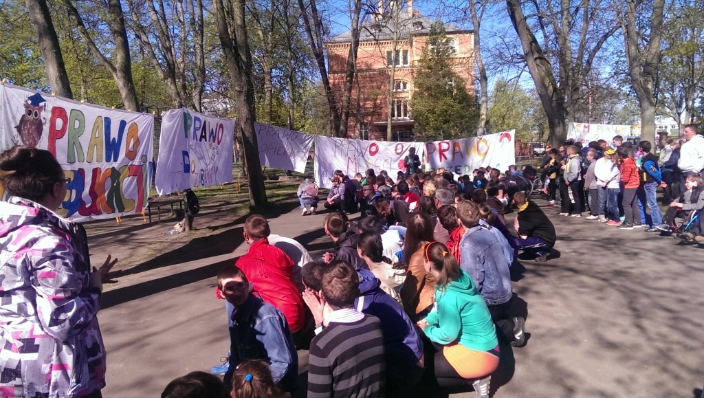 29 kwietnia przy tablicy pamiątkowej odbył się uroczysty apel przygotowany przez uczniów gimnazjum i szkoły zawodowej. Po apelu uczniowie III klasy gimnazjum przeprowadzili zajęcia warsztatowe dla młodszych kolegów z klasy VI pod nadzorem p. pedagog M. Wysokińskiej. W przygotowanych zadaniach, znalazła się krzyżówka, puzzle do ułożenia z dwóch ilustracji oraz rozsypanka wyrazowa. Tematyka warsztatów nawiązywała do praw dziecka.