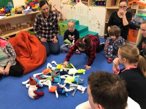 Niebawem DZIEŃ PLUSZOWEGO MISIA dlatego właśnie uczniowie z klasy III a Branżowej Szkoły I stopnia ucząc się ściegów uszyli MISIE! Przepiękne, kolorowe i jedyne w swoim rodzaju Przytulanki trafiły do SMERFIKÓW z przedszkola specjalnego. Podczas spotkania integracyjnego młodzież bawiła się z maluchami we wszystkie możliwe zabawy od „pana balonika” przez „niedźwiedzia” do „krasnoludków”. Dodatkowo upowszechniliśmy akcję „Cała Polska Czyta Dzieciom” poprzez czytanie pięknych leśnych opowieści. Liczymy na więcej takich pięknych i owocnych spotkań.