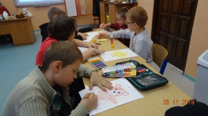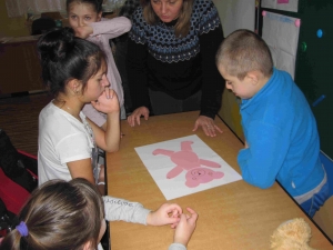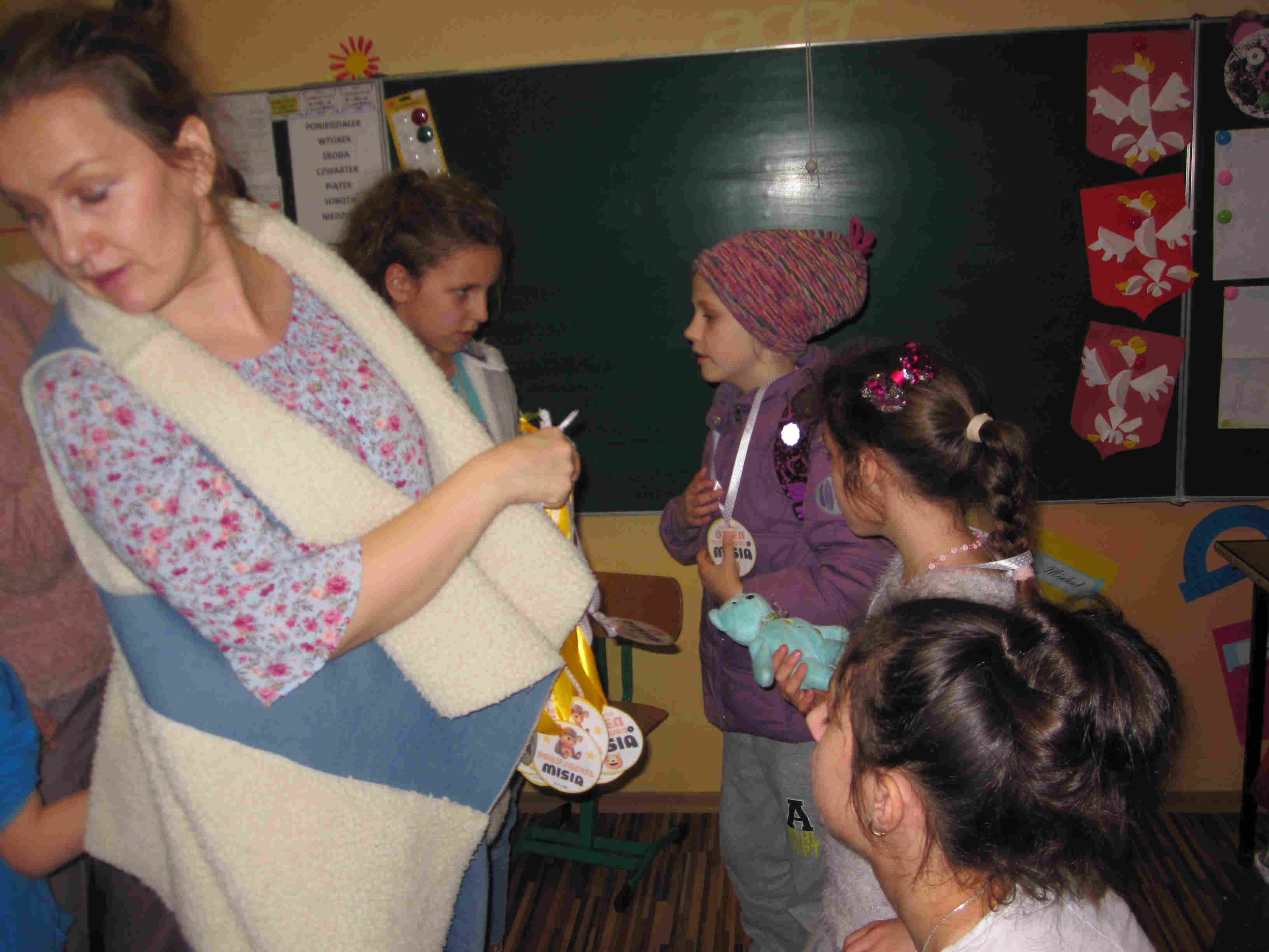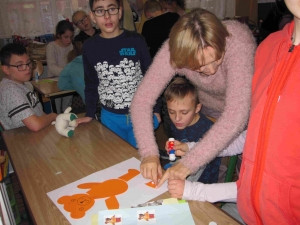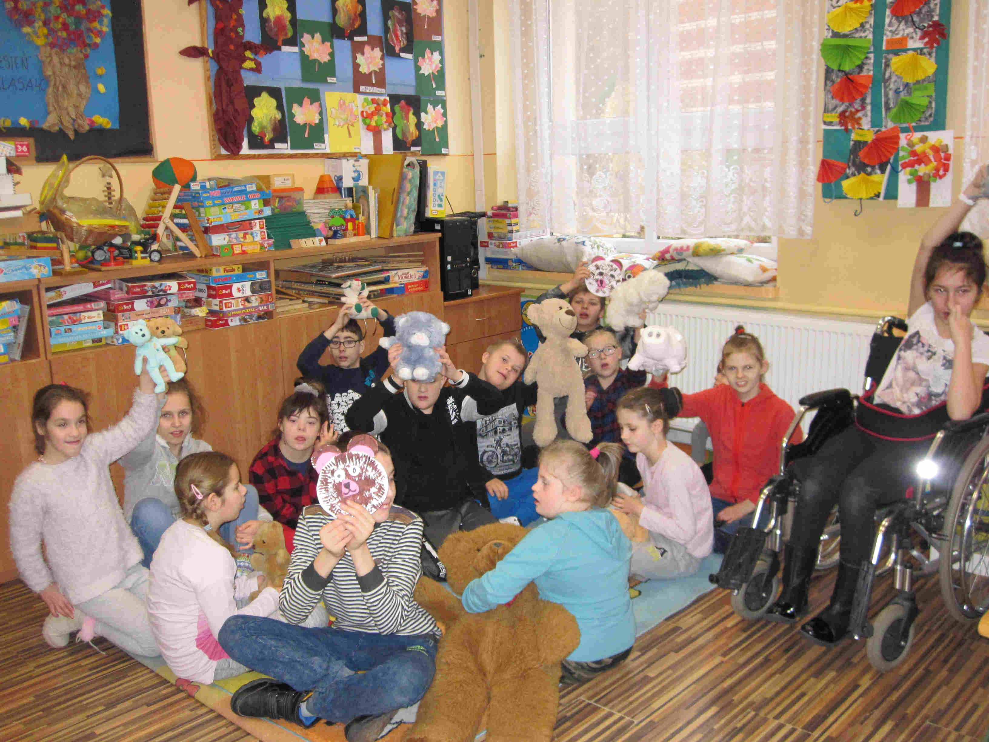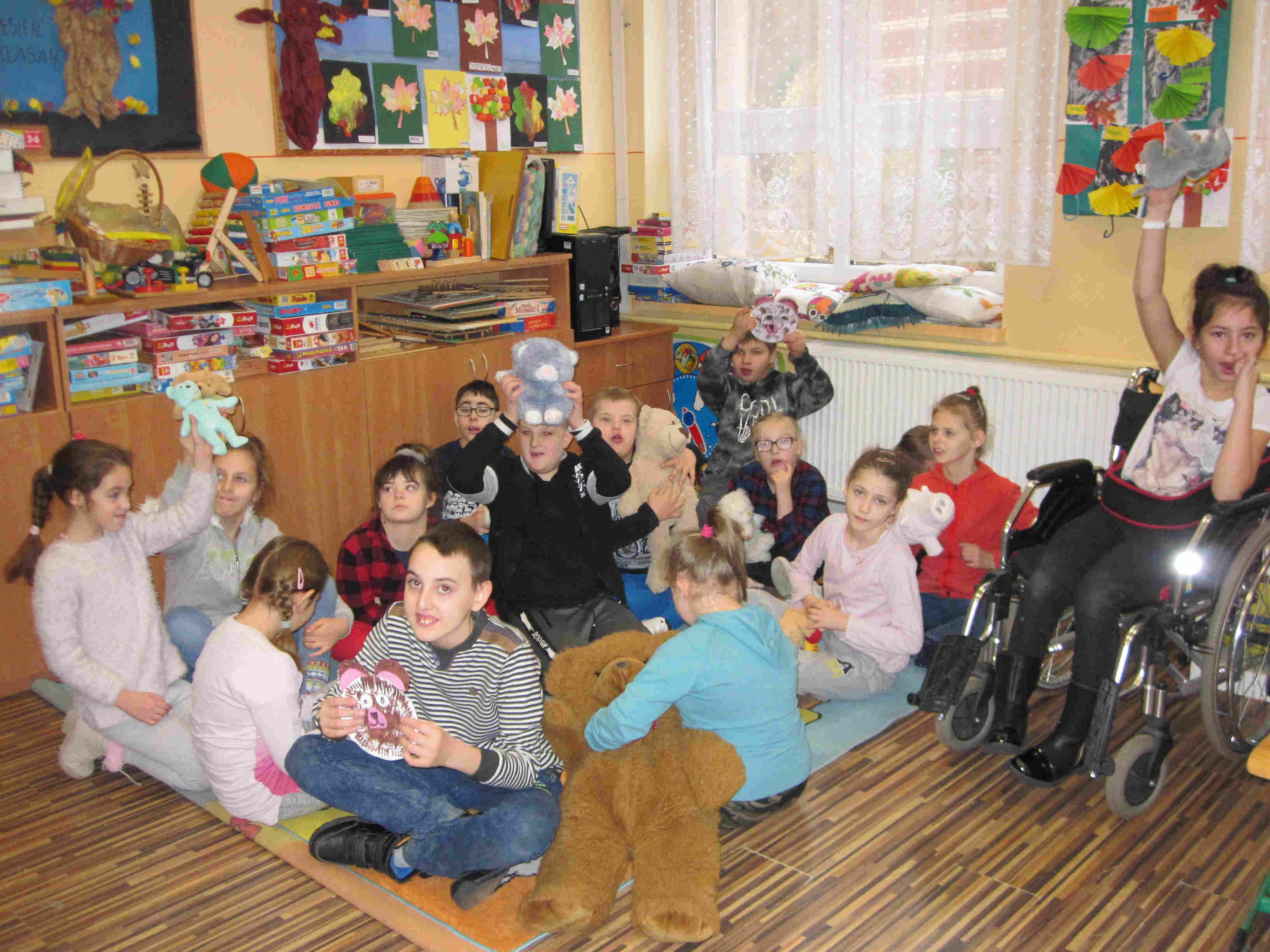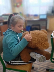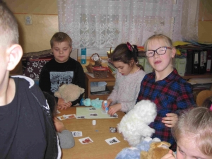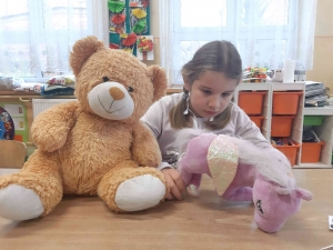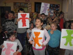 Poznaliśmy zwyczaje i styl życia niedźwiedzi brunatnych i polarnych. Przypomnieliśmy sobie historię powstania pluszowych zabawek. Oglądaliśmy różne postacie z bajek – opowiadaliśmy o nich, oglądaliśmy krótkie filmy z misiami w roli głównej. Wykonaliśmy prace plastyczne przedstawiające postać misia. Na zakończenie zabawy każdy otrzymał pamiątkowy Dyplom Przyjaciela Misia oraz pyszne misie haribo.