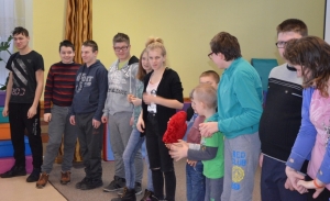 W pierwszej kolejności uczniowie szkoły podstawowej oraz gimnazjum zapoznali się z prezentację multimedialną o pochodzeniu Święta Zakochanych. Uzyskali informacje, skąd się wzięły Walentynki. Obchody święta uatrakcyjnił występ muzyczny – karaoke. Sporo pozytywnych emocji dostarczyła wychowankom naszego ośrodka zabawa walentynkowa „gorące serce”. Kulminacyjnym punktem spotkania było wręczenie kartek walentynkowych. Zgodnie z tradycją tego święta nie zabrało słodyczy dla wszystkich uczestników zabawy. Za wszystkie atrakcje odpowiedzialni byli: p. Hanna Kazimierczuk, p. Marzena Barzowska oraz p. Andrzej Tomalak.