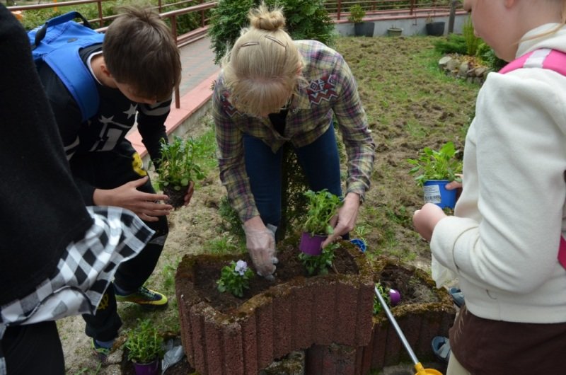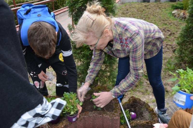 Najwięcej emocji wzbudziły zajęcia praktyczne, na których posadziliśmy sadzonki kwiatów przed szkołą. Teraz pozostanie nam dbać o nie, aby jak najdłużej były ozdobą naszego budynku.