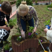 Najwięcej emocji wzbudziły zajęcia praktyczne, na których posadziliśmy sadzonki kwiatów przed szkołą. Teraz pozostanie nam dbać o nie, aby jak najdłużej były ozdobą naszego budynku.