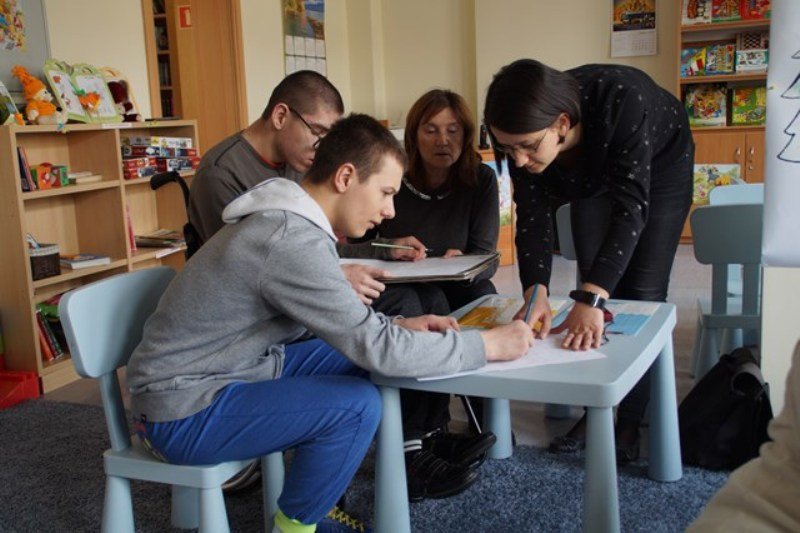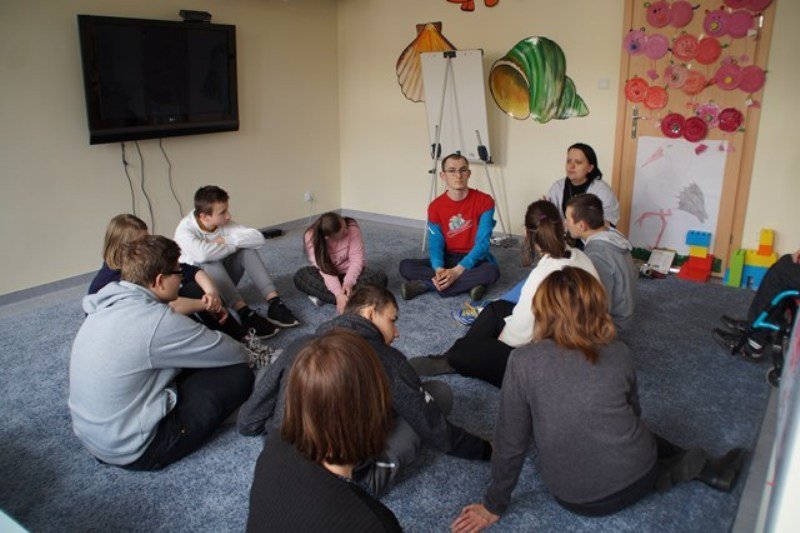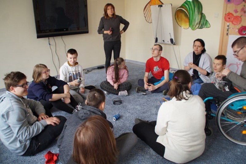 W zajęciach uczestniczyli uczniowie z klas I/IIb i II/IIIa zespołów edukacyjno – terapeutycznych gimnazjum wraz z wychowawczyniami p. Rytą Leszczyńską i Marią Styp-Rekowską oraz praktykantką p. Katarzyną Szczepańską. Dodatkowego wsparcia udzieliła nam,prężnie działająca w szkole, pani bibliotekarka – Justyna Średnicka, która w przyszłości będzie koordynatorem spotkań bibliotecznych.