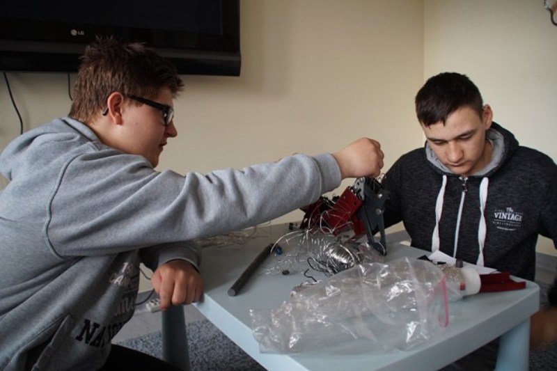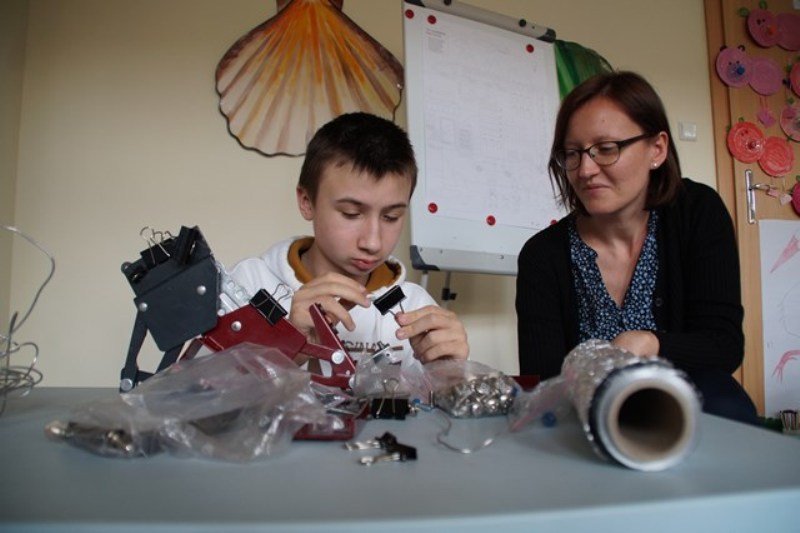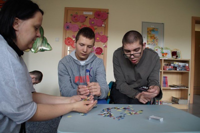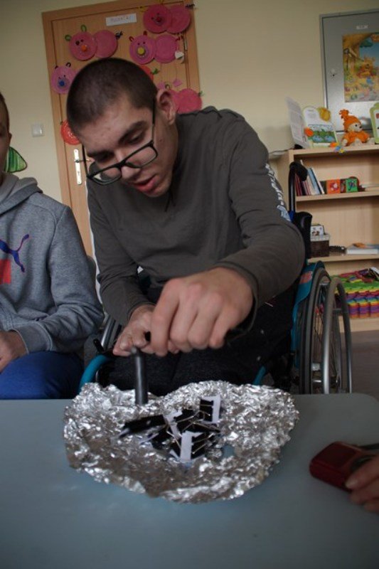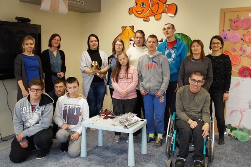 W czwartek 27 kwietnia 2017 r. wybraliśmy się na wycieczkę do Biblioteki Publicznej im. A. Majkowskiego w Wejherowie. Było to nas sporym wyzwaniem, ponieważ rzadko mamy okazję korzystać z komunikacji miejskiej z powodu znacznie ograniczonej sprawności motorycznej naszych uczniów. Miało to jednak duże znaczenie dla rozwoju ich umiejętności społecznych. W bibliotece przywitała nas p. Ewelina Magdziarczyk – Plebanek, która poprowadziła warsztaty ekologiczne w ramach projektu EkoPaka. Hasłem przewodnim spotkania było „aluminium”. Byliśmy bardzo zaskoczeni, gdy poznaliśmy wszechstronne zastosowanie tego niepozornego metalu w codziennym życiu. Na poszczególnych stanowiskach uczniowie eksperymentowali z aluminium: poznawali jego właściwości magnetyczne, ciężar, giętkość. Proponowane zadania pobudzały ich wyobraźnię i kreatywność. Dużej satysfakcji dostarczyło uczniom skonstruowanie „wyimaginowanej maszyny do wydobywania boksytu”. Warsztaty ekologiczne świetnie wpisały się w tematykę zajęć edukacyjnych w szkole i rozbudziły ciekawość poznawczą młodzieży.