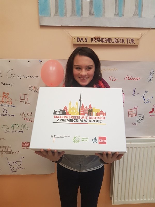 W ramach projektu szkoły otrzymała jedne z 1000 pakietów z materiałami dydaktycznymi do wykorzystania w nauce, promocji języka niemieckiego lub do przeprowadzenia niestandardowej lekcji pokazowej, np. w ramach Dni Otwartych.
