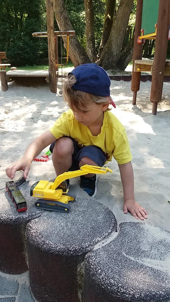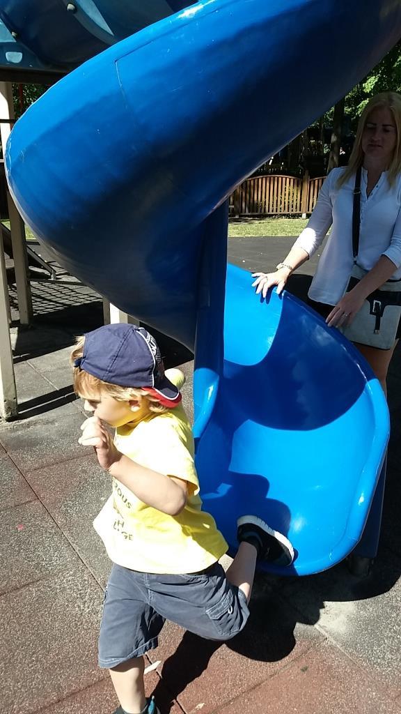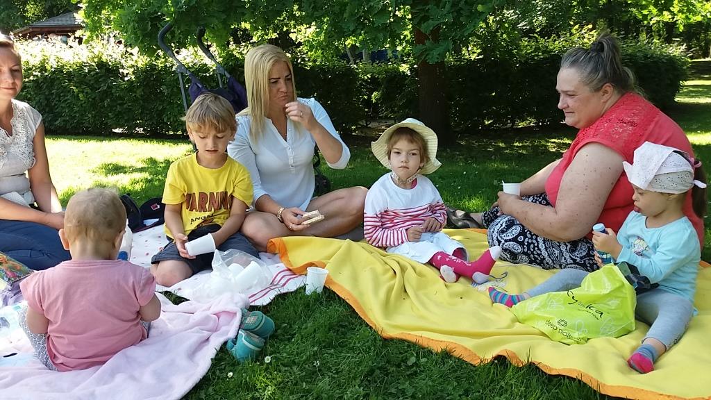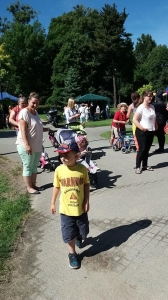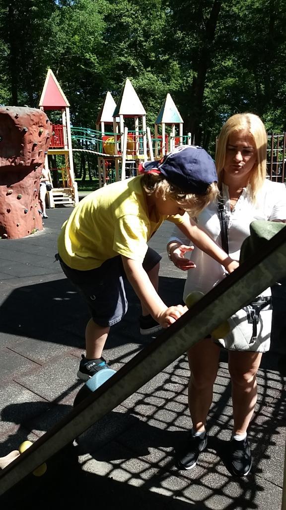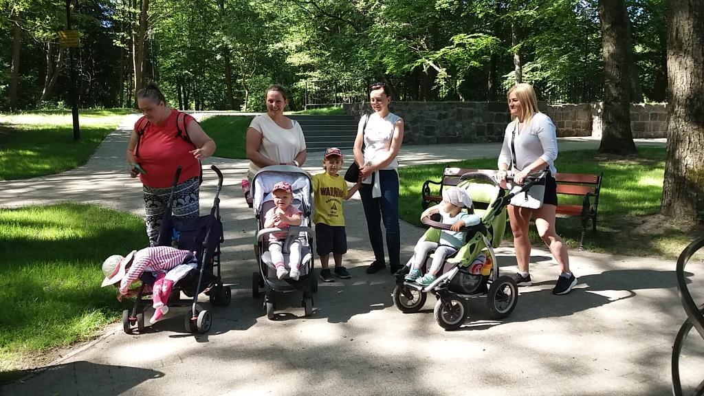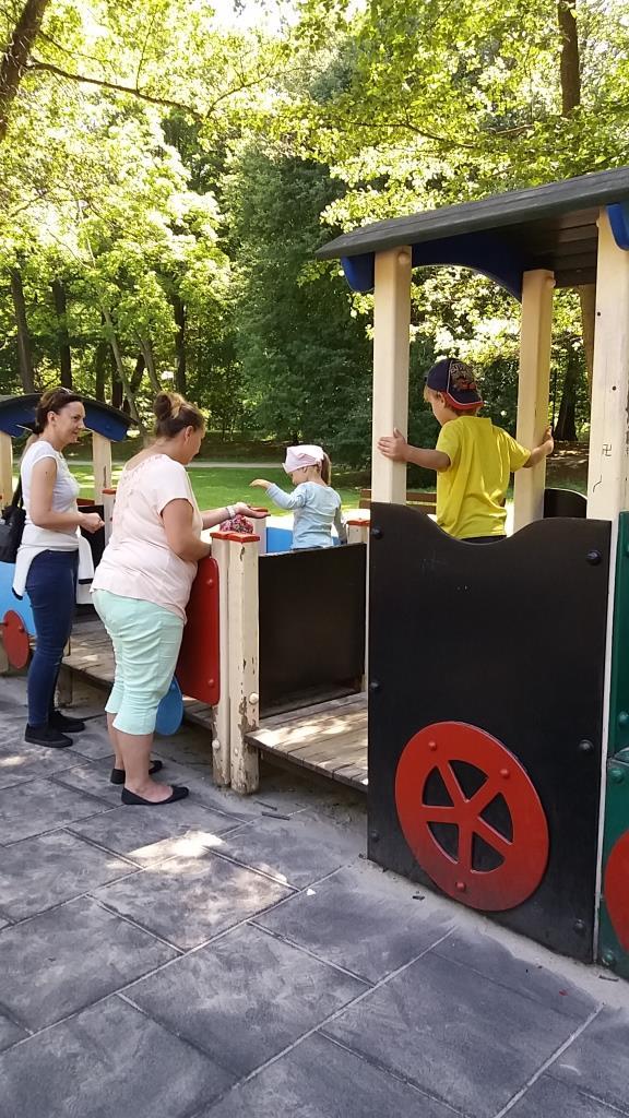 Grupa Smerfiki wspólnie z rodzicami zwiedzała park, korzystała z wielu atrakcji, jakie zostały przygotowane przez organizatorów. Pogoda sprzyjała spacerom po uroczych alejkach parku i wspólnym odpoczynku oraz rekreacji na terenie parku. Spotkaliśmy się oko w oko z żurawiem, orłem bielikiem i czarnymi łabędziami pływającymi w zbiornikach wodnych. Oczywiście nie pominęliśmy placu zabaw, na którym przedszkolaki bawiły się fantastycznie. Na koniec podziwialiśmy wspaniałe fontanny i zadowoleni z wycieczki wróciliśmy do przedszkola.