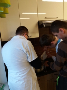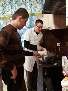 W tym tygodniu odbyło się wielkie pieczenie gofrów. Do pracy zabraliśmy się zaraz po obiedzie. Rozpoczęliśmy od przygotowania produktów. Przygotowaliśmy dużą miskę ciasta. Następnie, kiedy gofrownica była już odpowiednio nagrzana przystąpiliśmy do pieczenia. Wszędzie unosił się wspaniały aromat pieczonego ciasta. Wszystkie wyglądały apetycznie a smakowały jeszcze lepiej. Gofry były tak pyszne, że co niektórzy skorzystali z dokładki.