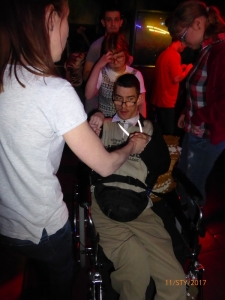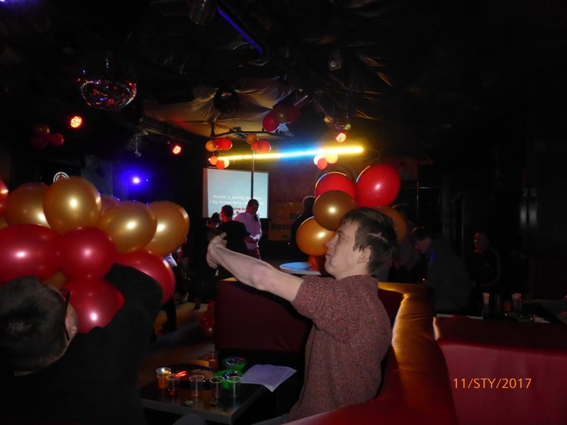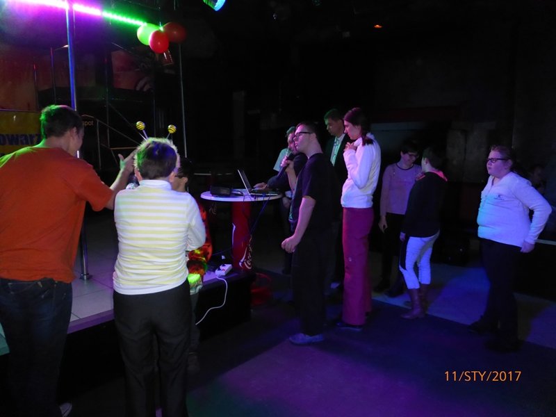 Tuż przed feriami zimowymi, 11 stycznia 2017r. w klubie Hot-Spot uczniowie Szkoły Specjalnej Przysposabiającej do Pracy wraz z nauczycielami uczestniczyli w integracyjnym spotkaniu dzieci i młodzieży niepełnosprawnej z powiatu wejherowskiego. Karnawałowe karaoke to już cykliczna impreza, w której jak zawsze, z ogromną przyjemnością wzięliśmy udział. Stowarzyszenia Naprzód Wejherowo zadbało o fantastyczną oprawę muzyczną, dzięki której uczestnicy mogli tańczyć w rytmach ulubionych przebojów, karaoke, w którym spróbowali swoich umiejętności wokalnych, poczęstunek ale przede wszystkim o wspaniałą, radosną atmosferę karnawału. Dziękujemy za miło spędzony razem czas. 🙂