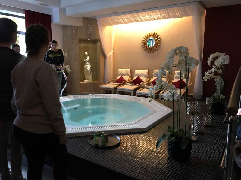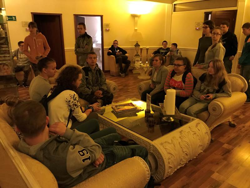 Hotel Faltom bussines&spa w Rumi gości Pracowników Pomocniczych Obsługi Hotelowej z naszej szkoły już od 3 lat. Z pomocą Pani Barbary Krasińskiej (kierownik recepcji) udało nam się z uczniami klasy 1a, 1b, 2a oraz 3a poznać zasady funkcjonowania obiektu hotelarskiego 4*. Obiekt bardzo dogodnie położony – dojechaliśmy do niego pociągiem SKM z Wejherowa do Rumi. Piękny hotel, który za każdym razem odsłania nam swoje tajemnicze zakamarki. Tym razem udało nam się obejrzeć najpiękniejszy i największy apartament jaki posiada hotel oraz night club, którego nigdy wcześniej Pani Hanna Stasiak (marketing) nie zdołała nam pokazać. Zauroczeni pięknymi pomieszczeniami poruszaliśmy się korytarzami z miękka wykładzina, przeszliśmy przez czarno-biała restauracje, pokoje, spa i wieków innych. Wycieczkę zakończyliśmy wspólna grą w bowling, która okazała się być równie fascynująca jak poznanie pierwszego w tym roku obiektu hotelarskiego.